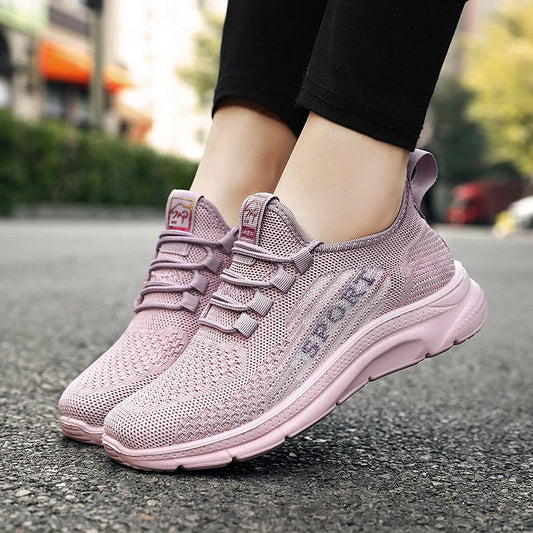 Women's Running Shoes Lace Up Sneakers Lightweight Female Casual Shoes Mesh Fashion Tennis Shoe Outdoor Soft Sole Women Shoes