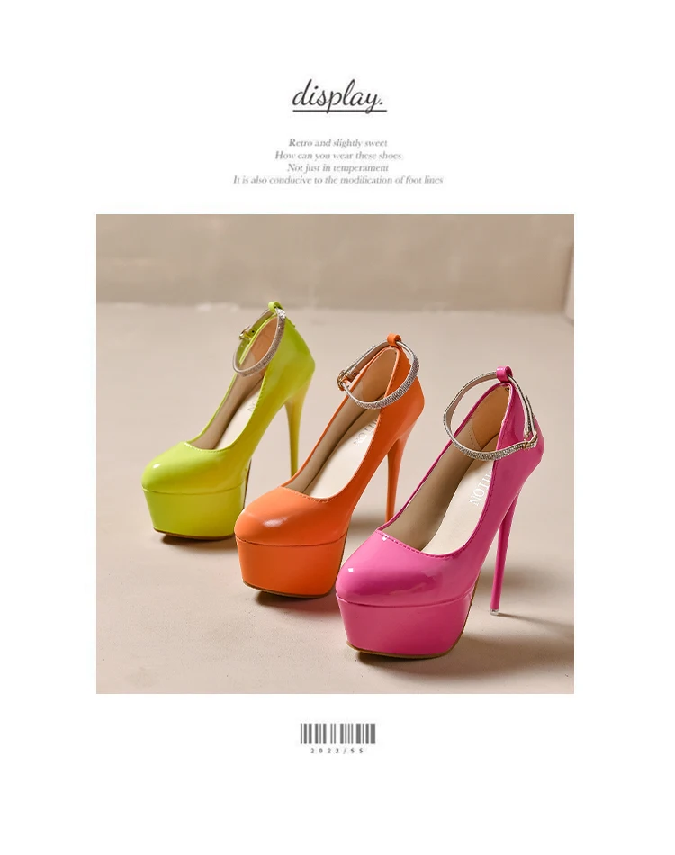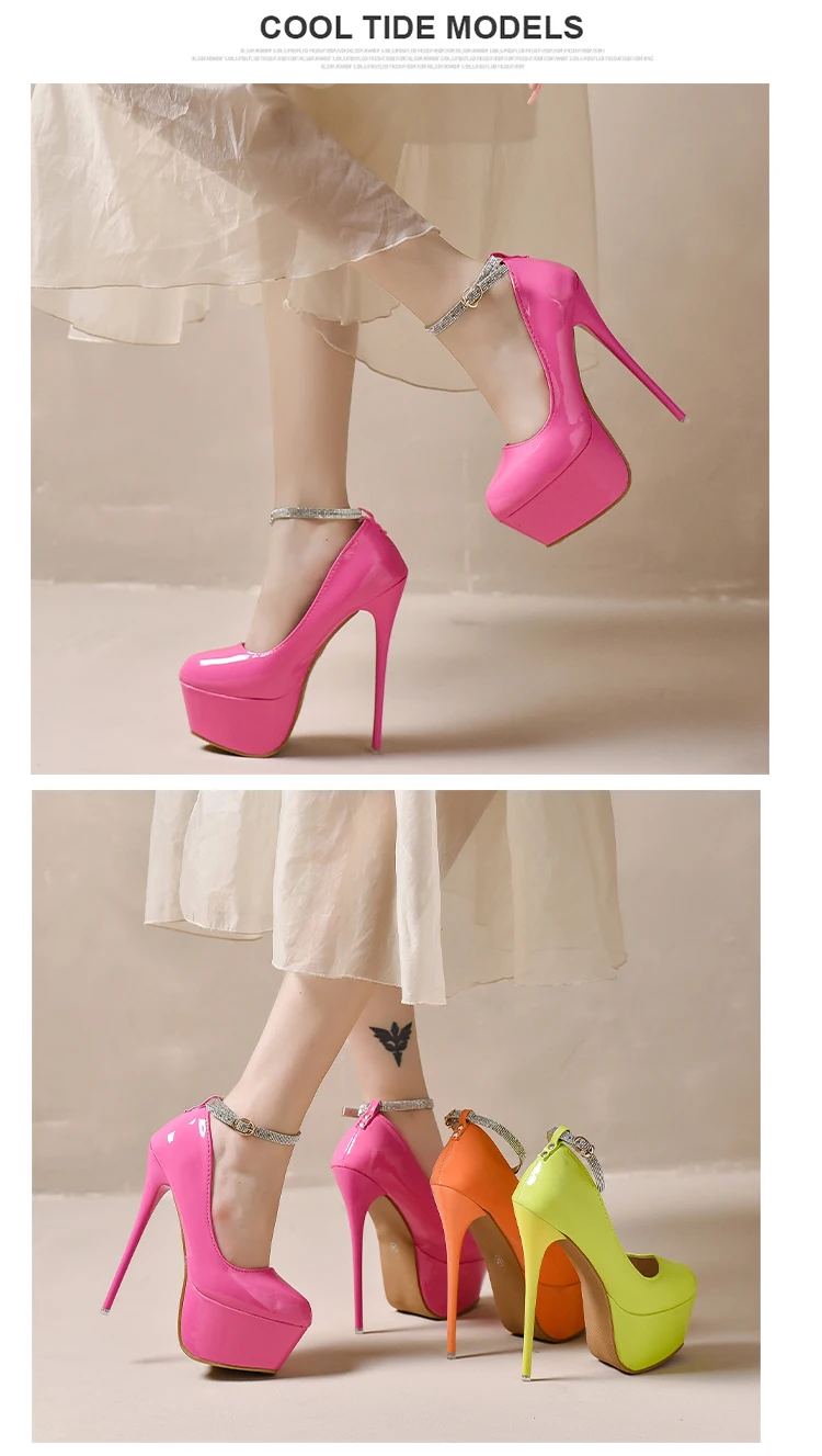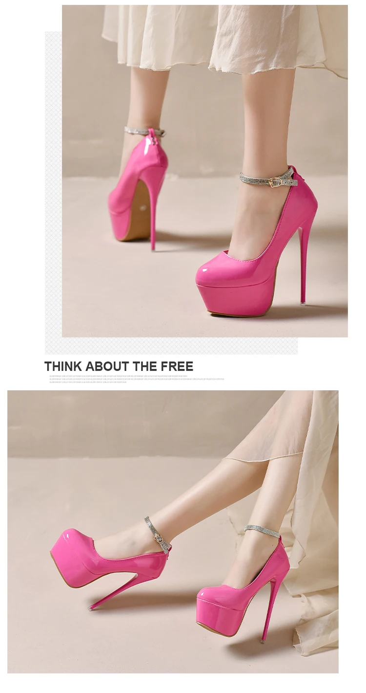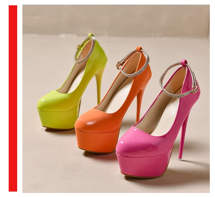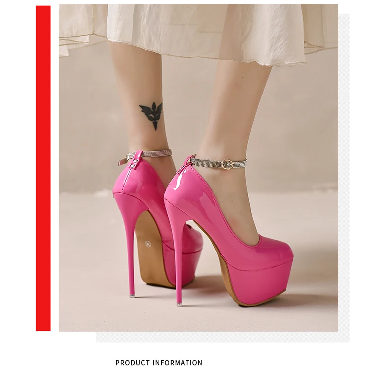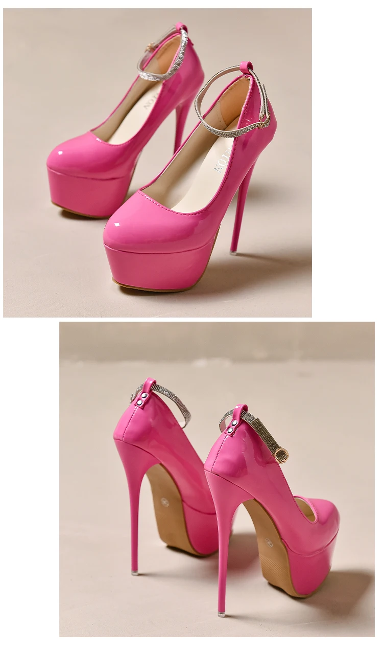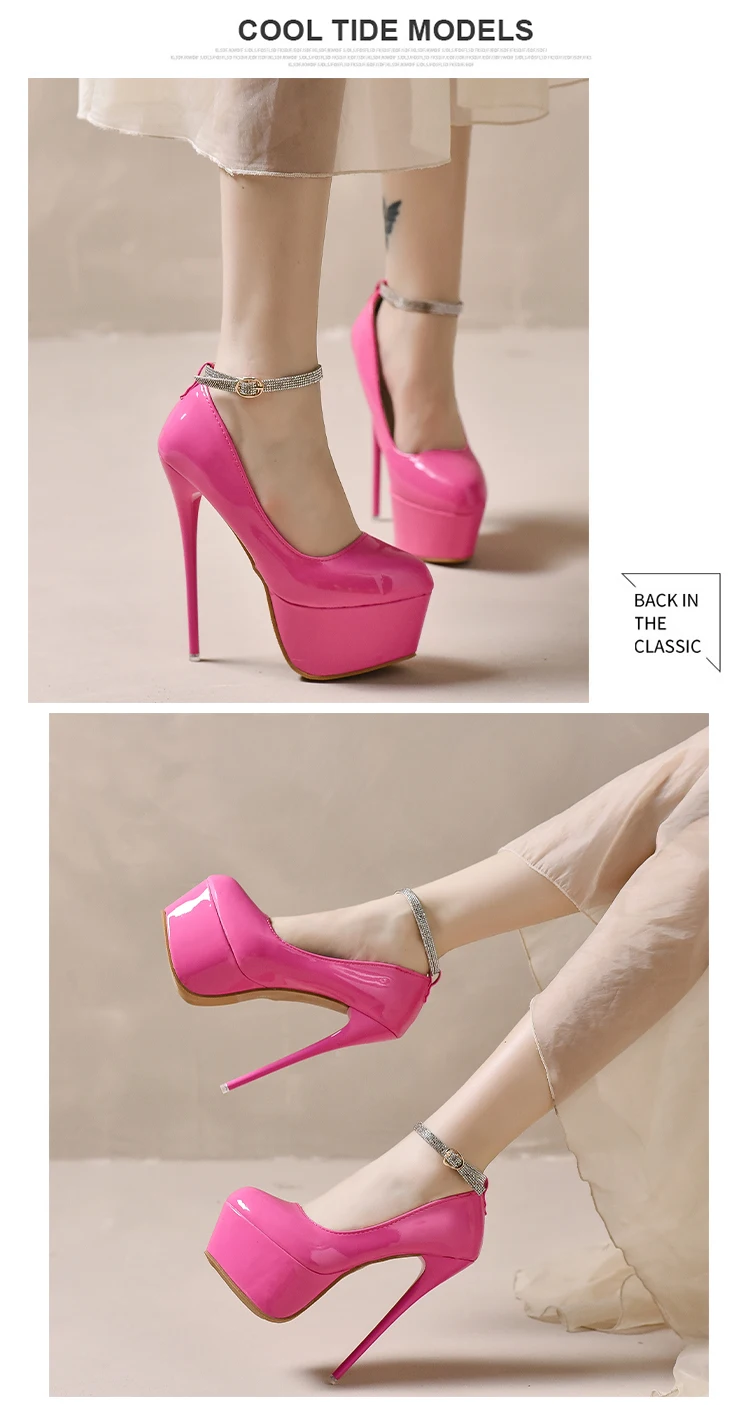 2024 Women Party Disco Dance 5.5cm Platform Pumps Buckles Super High Thin Spike Heels Fashion Dress Party Red Big Size 49 50