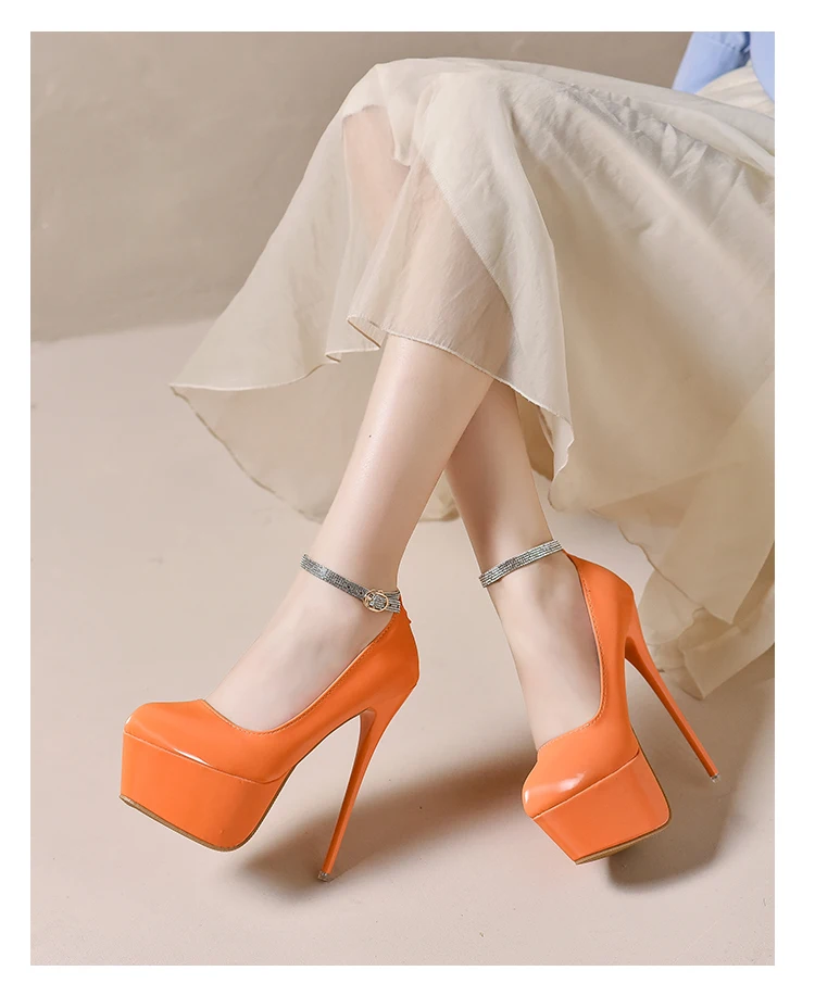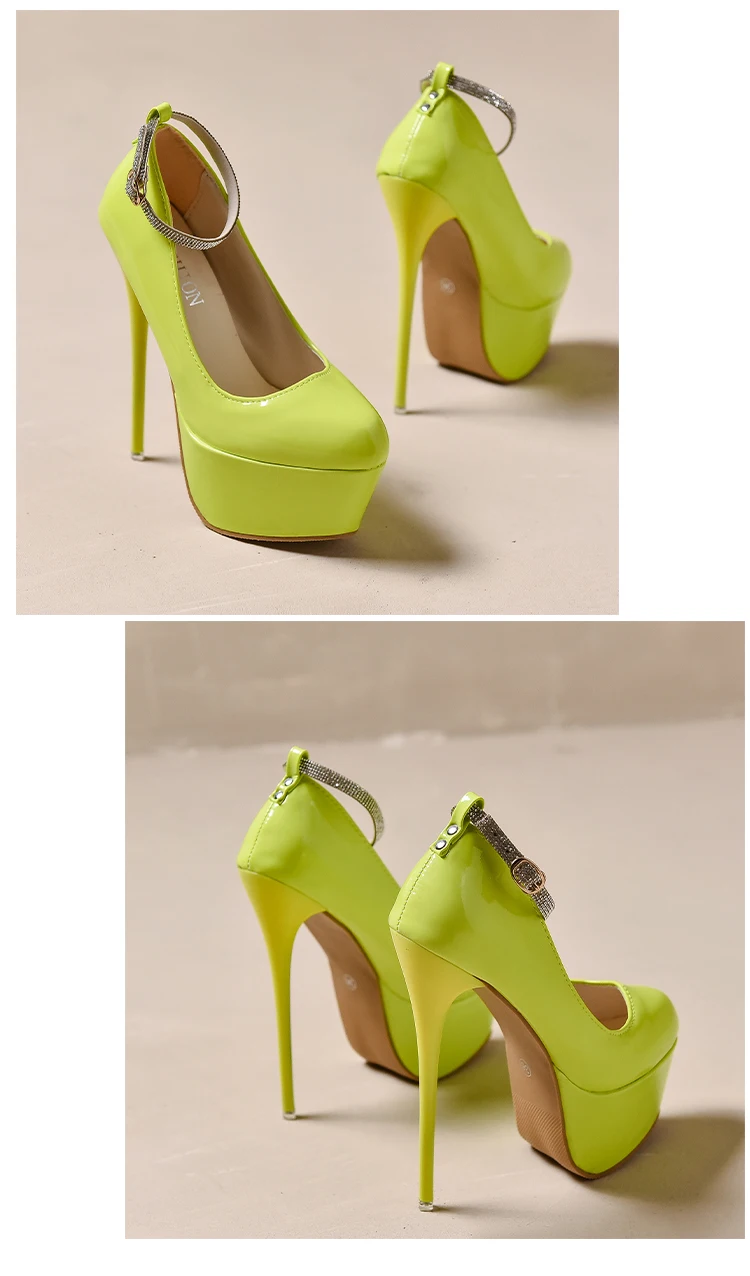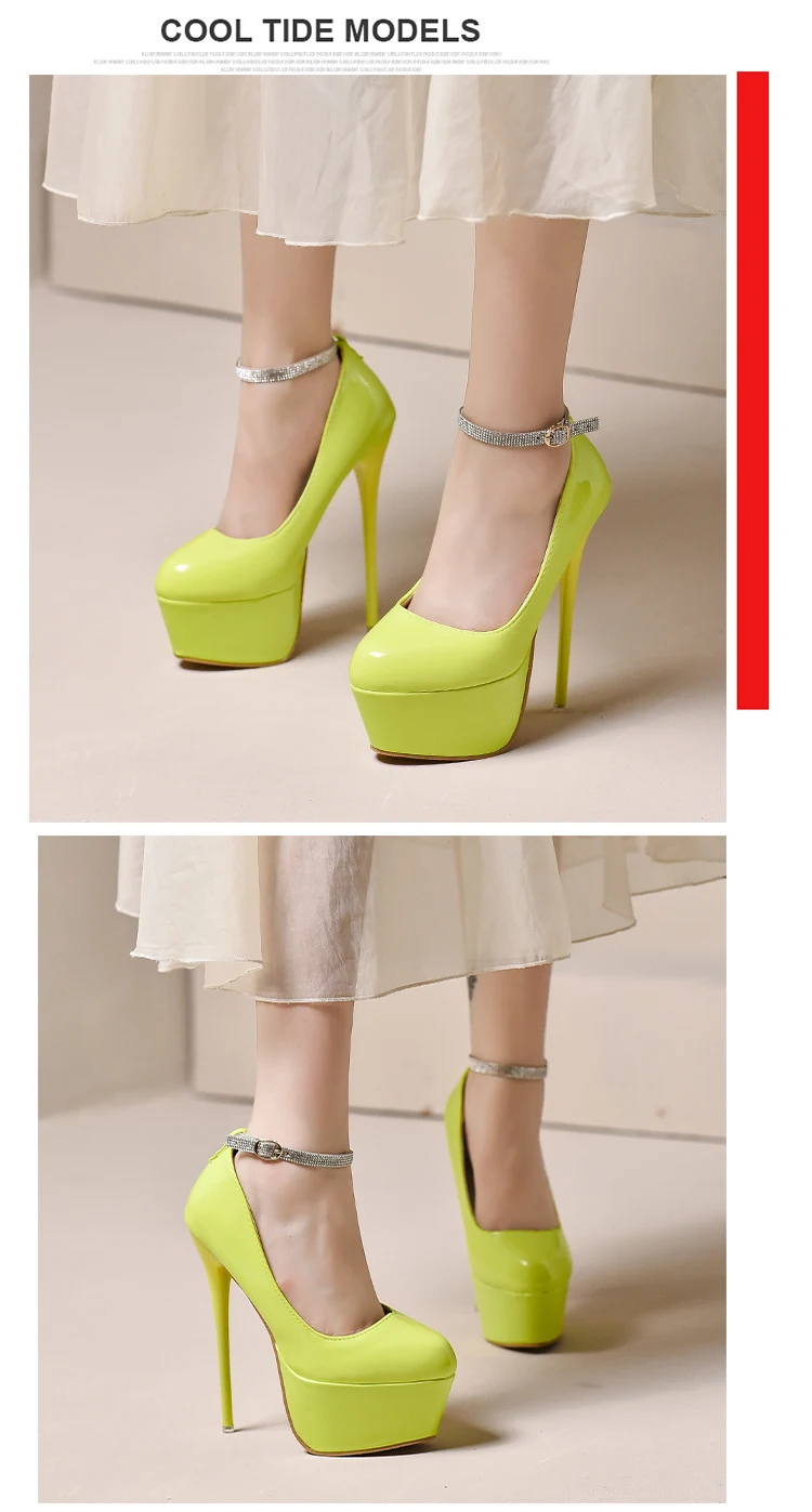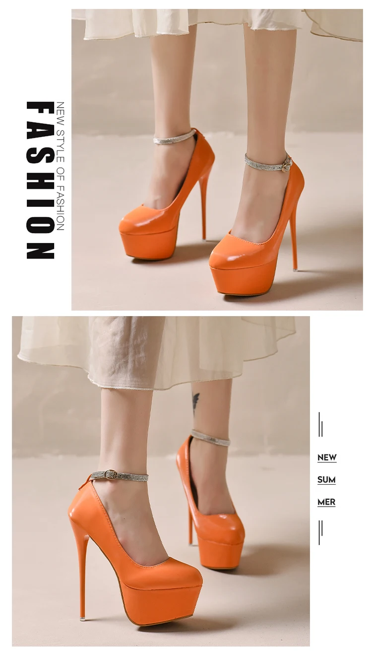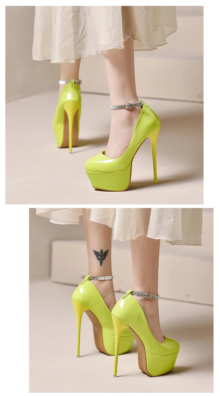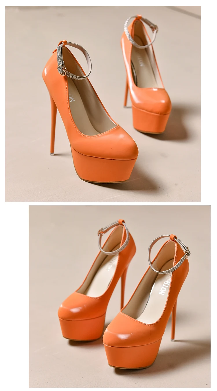 2024 Women Party Disco Dance 5.5cm Platform Pumps Buckles Super High Thin Spike Heels Fashion Dress Party Red Big Size 49 50