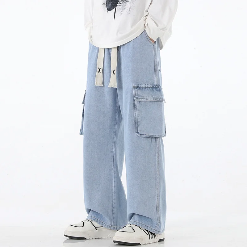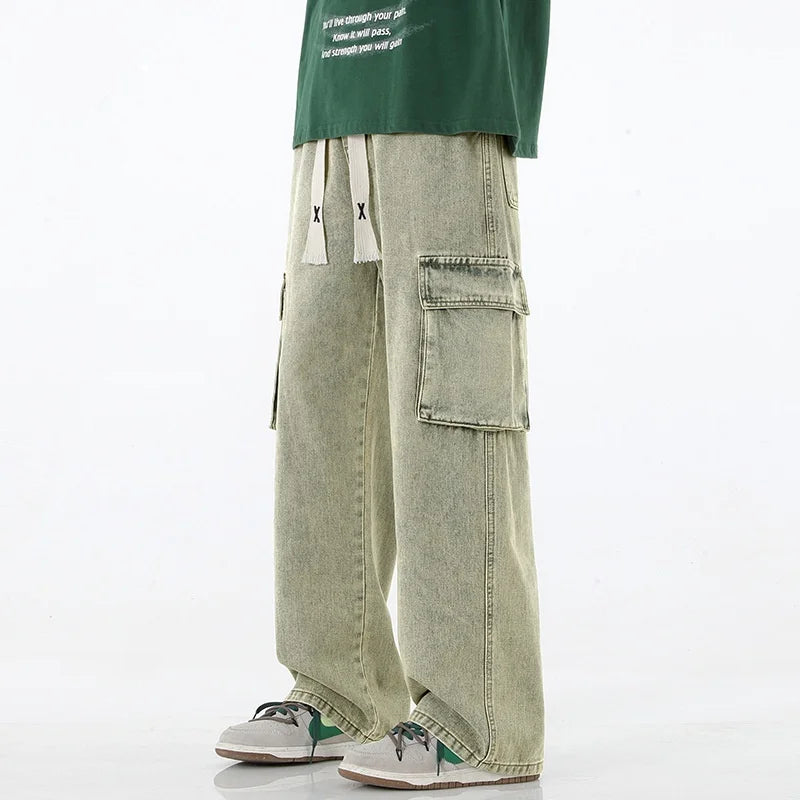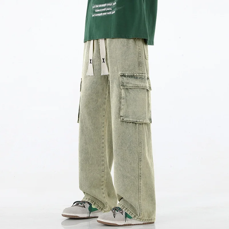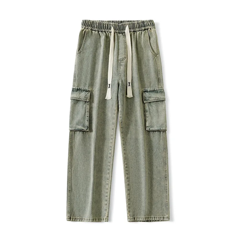 2025 New Y2K street wear multi pocket loose work pants men's pants retro loose men's multi pocket jeans four-color loose