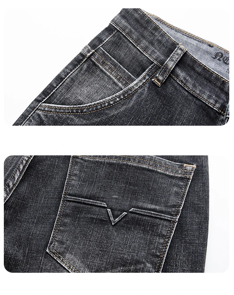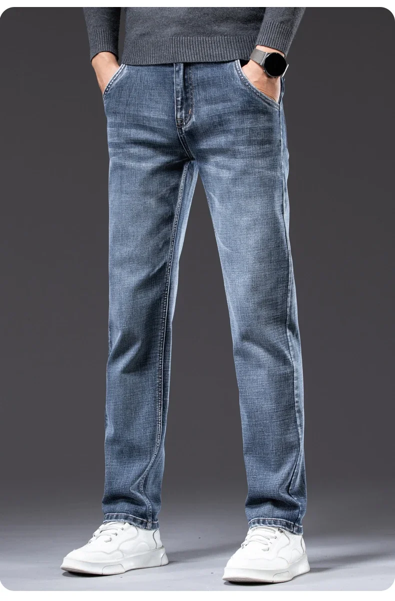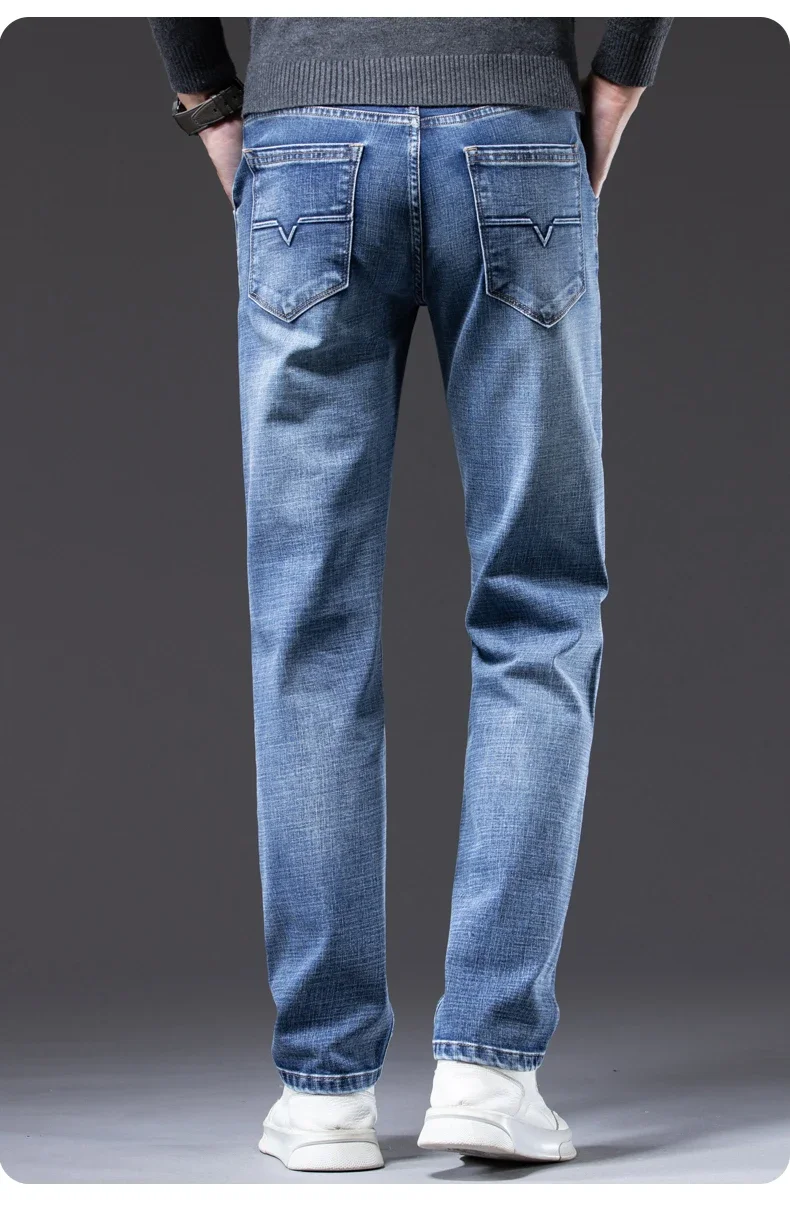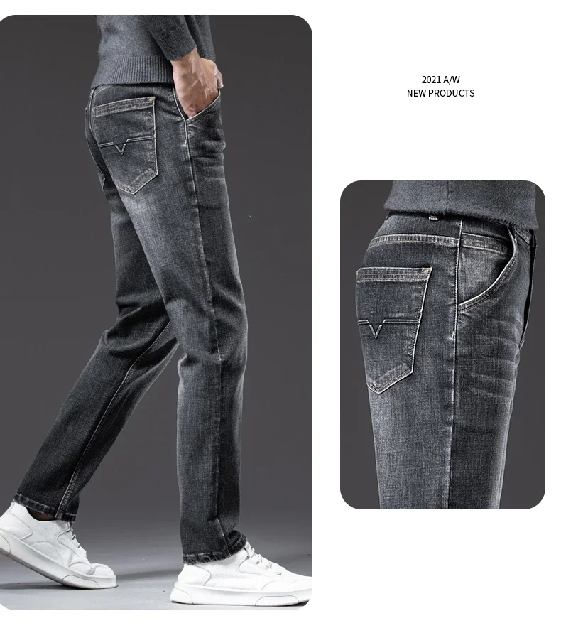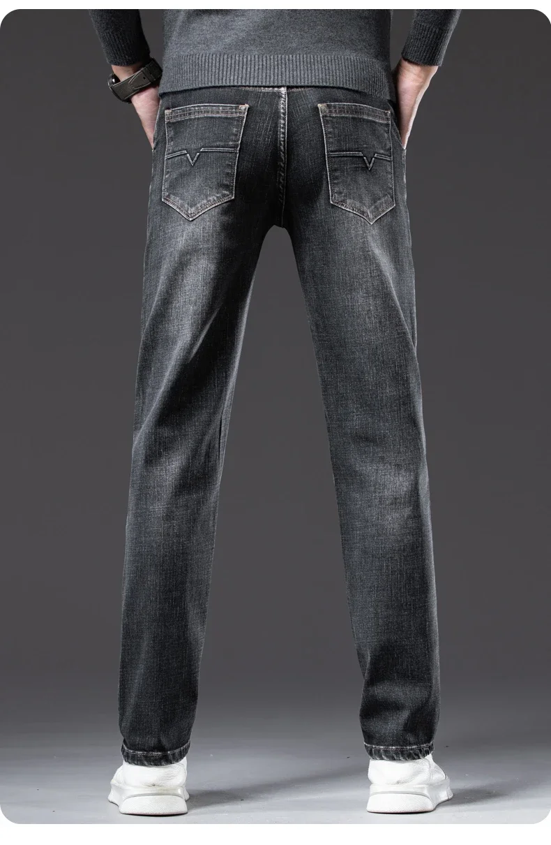 Autumn Men's Business Straight Fit Jeans Vintage Blue Smoke Gray Stretch Trousers Soft Comfortable Fabric Denim Pants Male