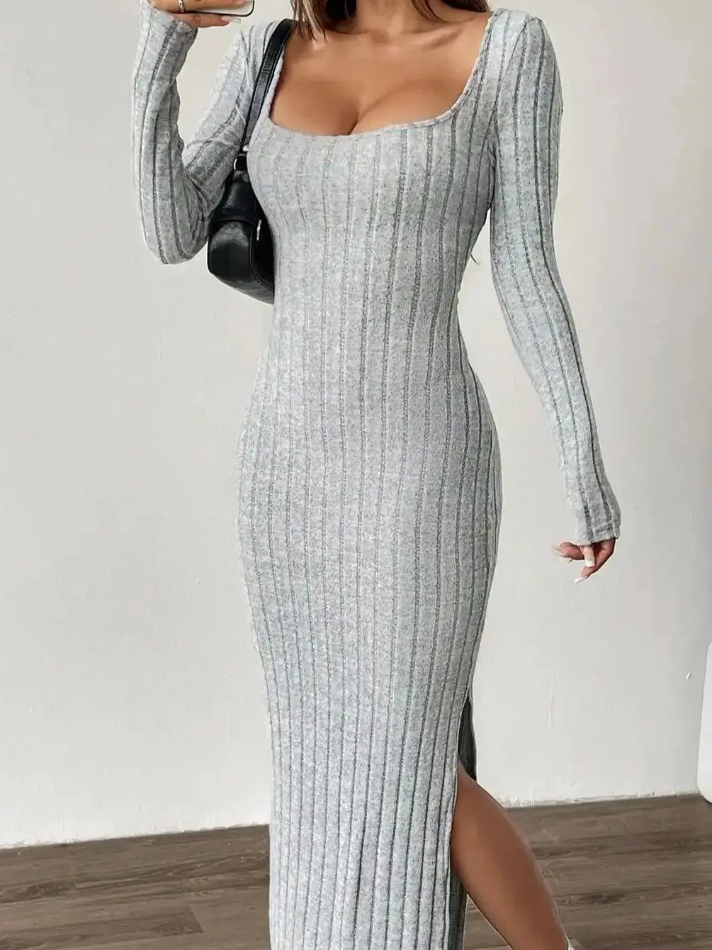 Autumn sexy backless slim slim slit long dress for women
