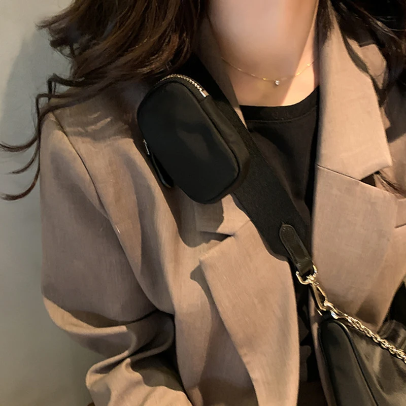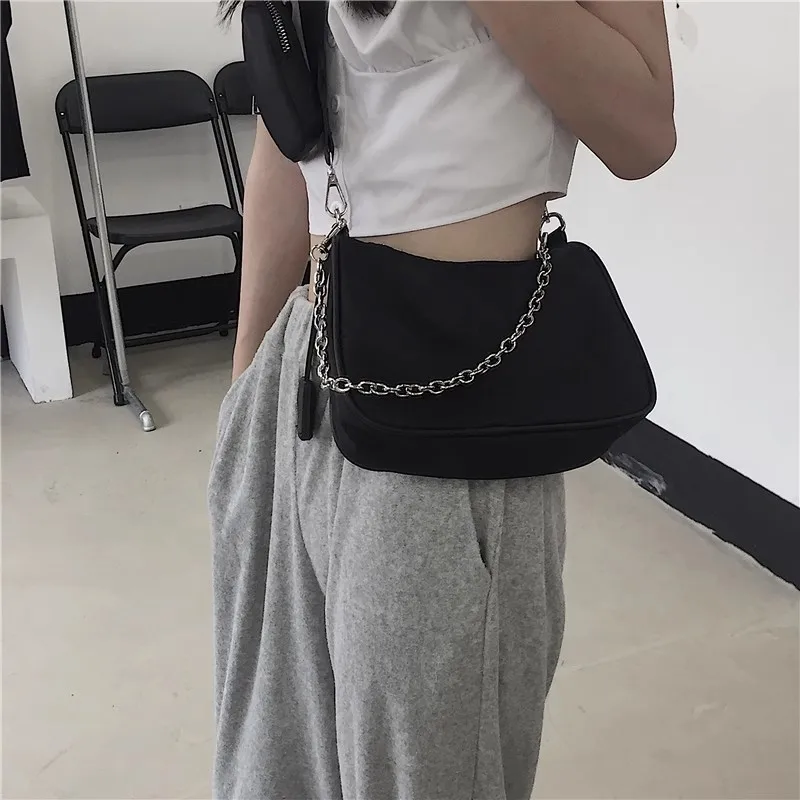 Casual Nylon Waterproof Women Shoulder Hobo Bags Fashion Cool Black Chain Decolr Armpit Crossbody With Small Purse