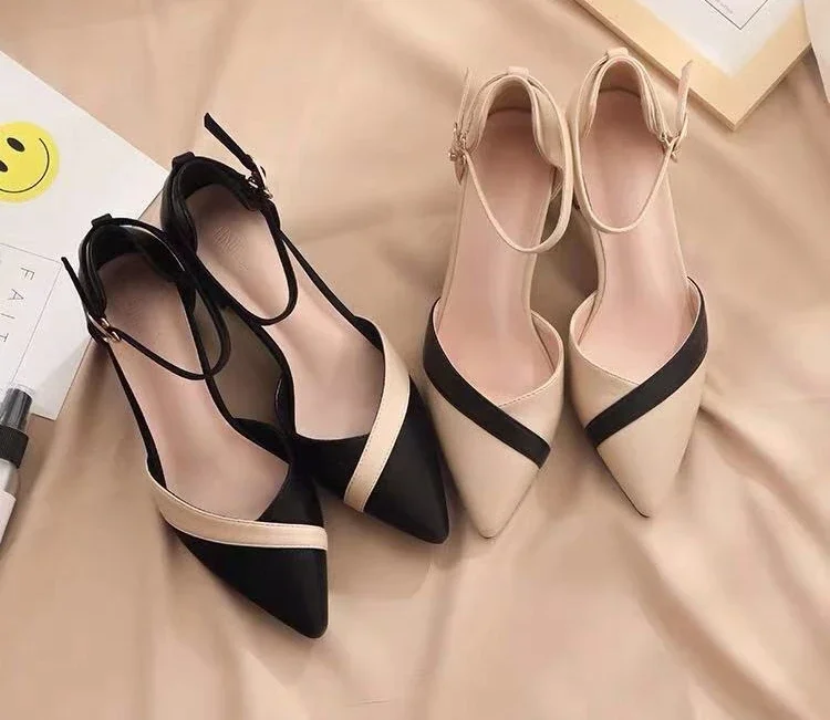 Contrast Color Pointed Toe Ladies Shoes Designer Luxury 2025 Pvc Original Summer Comfortable Trending Women's Sandals On Sale