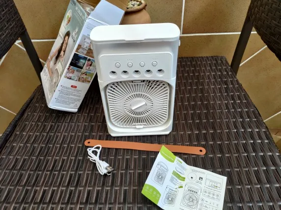 USB fan with water humidifier. It gives a cool feeling with natural water. Good price. Arrives in 7 days.