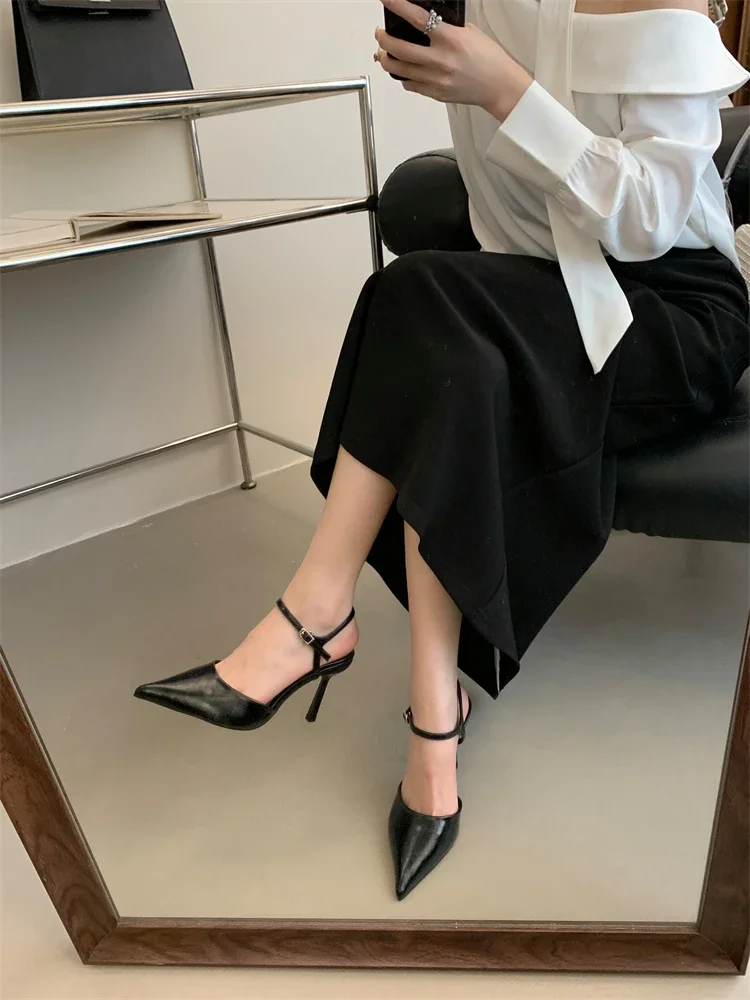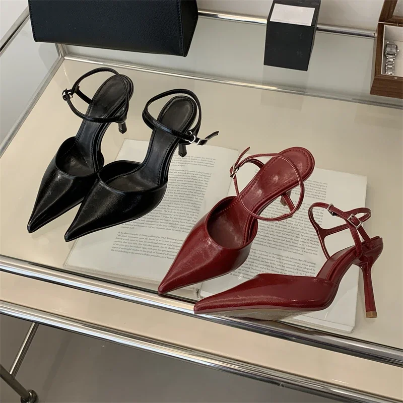 Eilyken Fashion Buckle Strap Women Pumps Sexy Pointed Toe Thin High Heels Slingbacks Sandals Fashion Wedding Party Mule Shoes