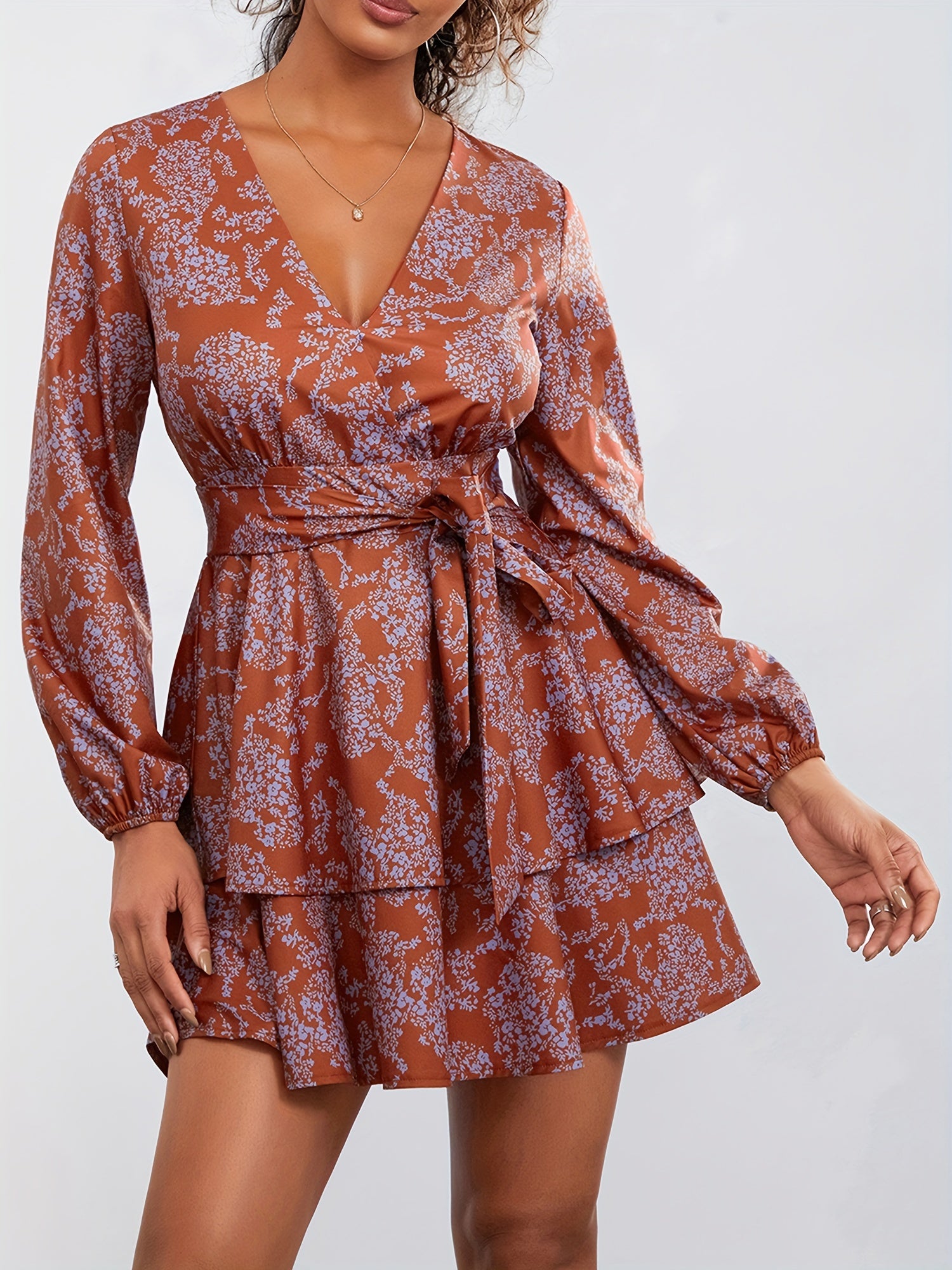 Elegant Floral V-Neck Dress for Women - Polyester, Machine Washable, Non-Sheer - Perfect for Spring/Summer/Fall, Floral, Dress, Elegant