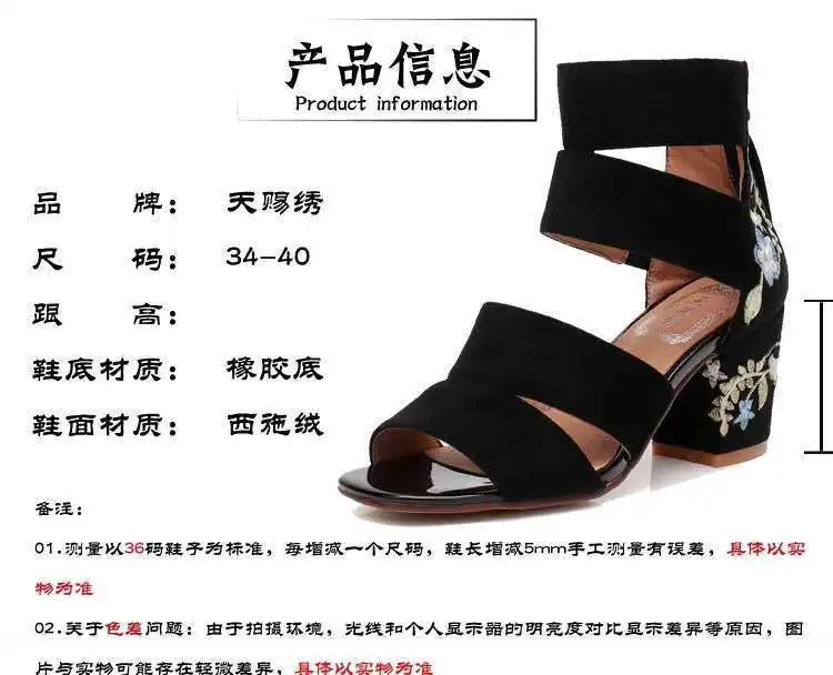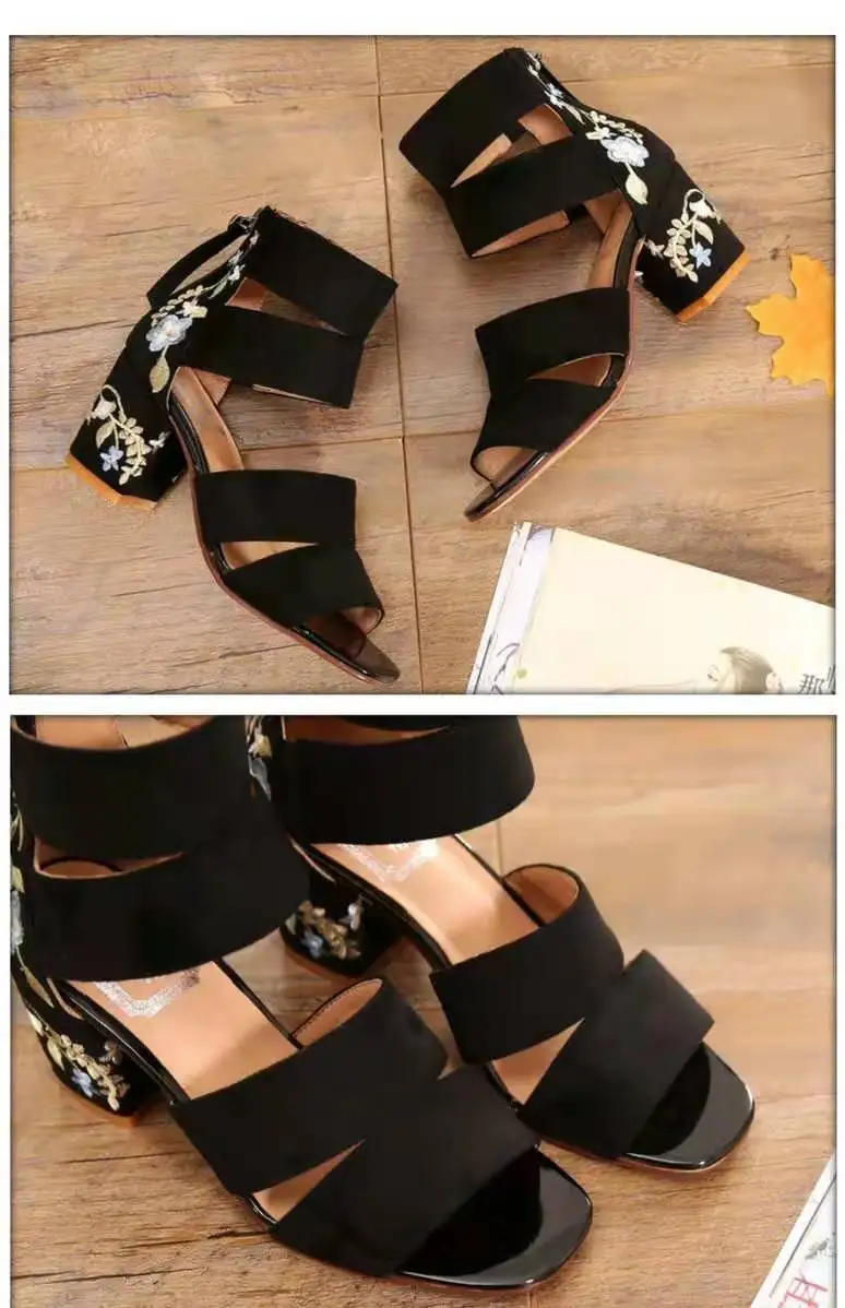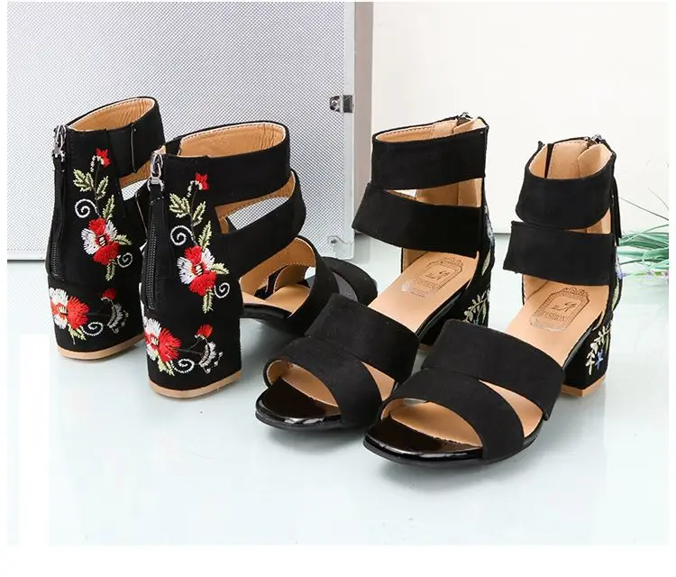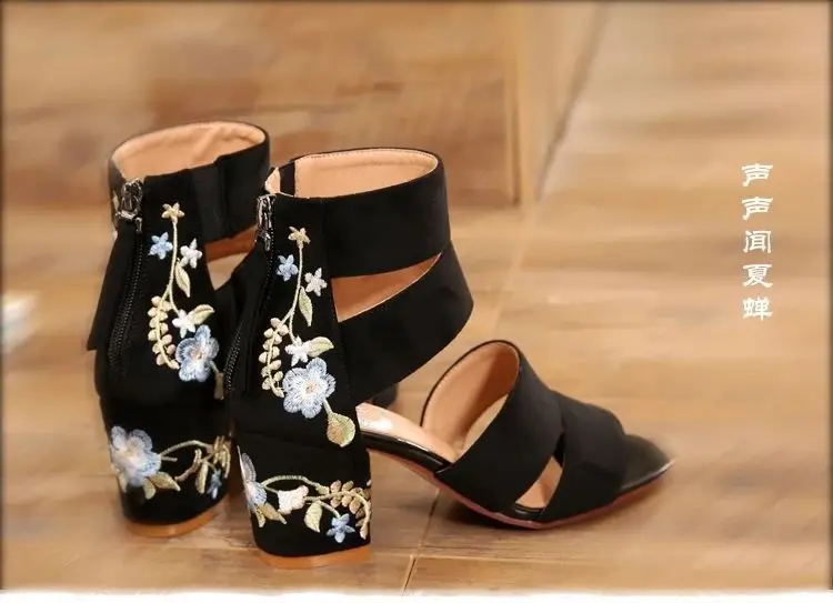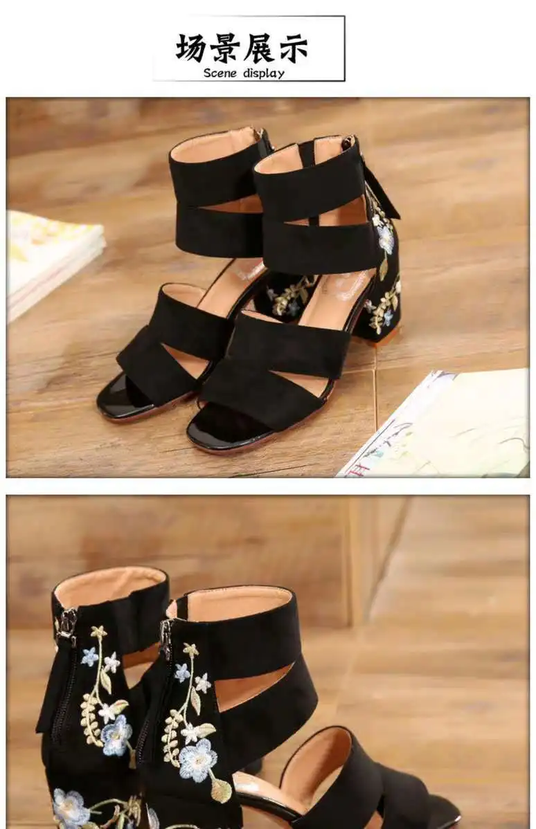 Ethnic Style Embroidered Mid-heel Sandals, Summer Casual Thick Heels Elegant Vintage Open-toed Embroidered Shoes, Women's Shoes