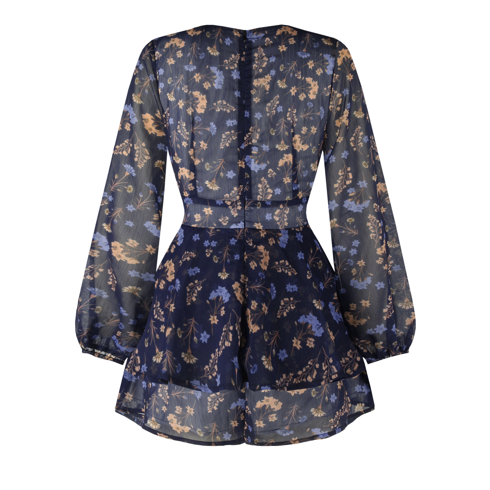 Fashion Autumn Sexy V-neck Long Sleeve Women's Dress Elegant Tied Print Mini Evening Dress Summer Party Chiffon Clothes Spring