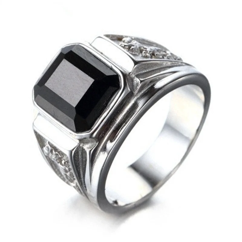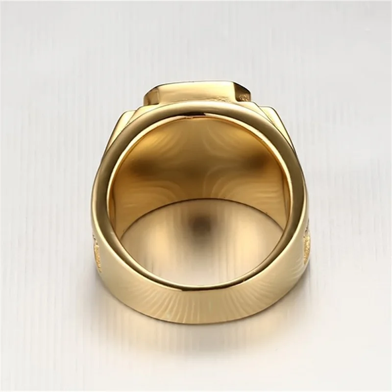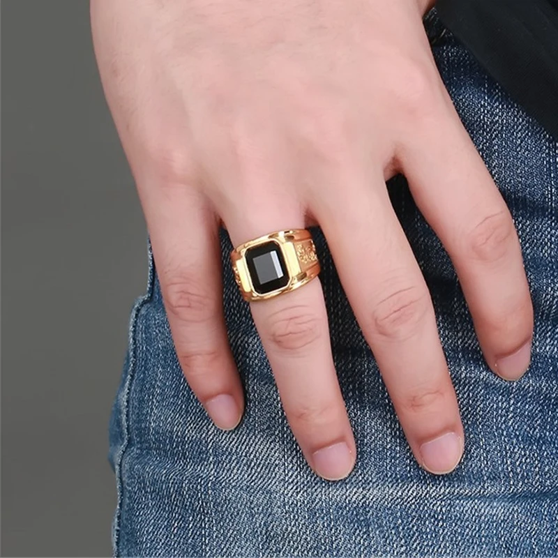 Fashion Men's Ring Square Facade Good Stone Inlaid Ring Side Flying Dragon Carving Domineering Men's Ring Party Jewelry Accessor