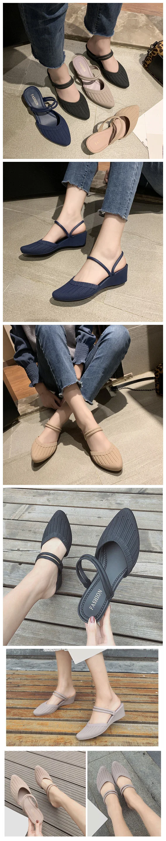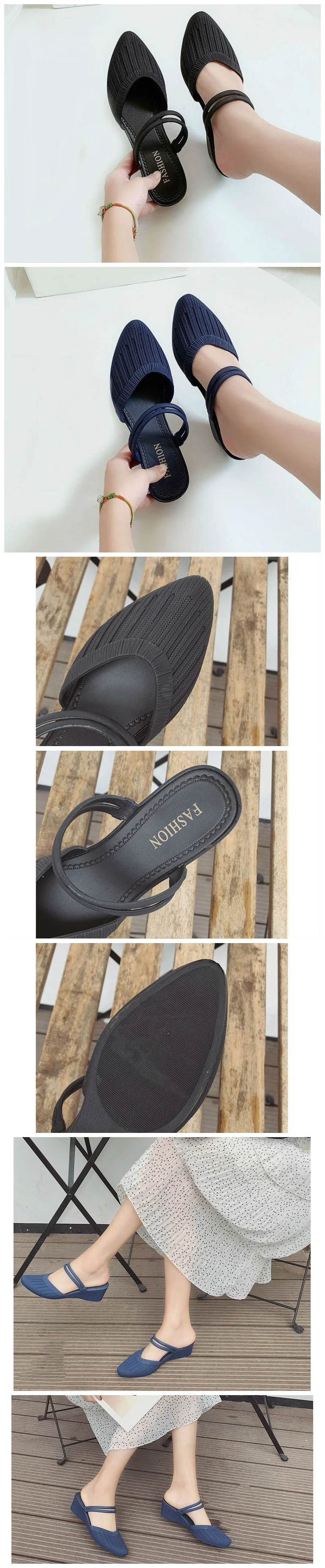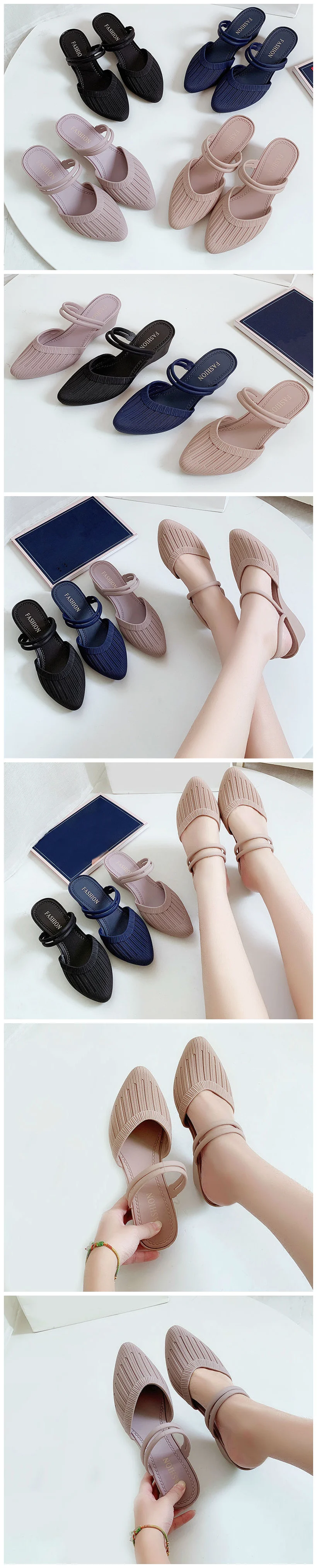 Fashion Women's Sandals Mules Slippers For Beach Shoes Close Toe Women Heels Strappy Wedges Shoes For Women Plastic Sandals