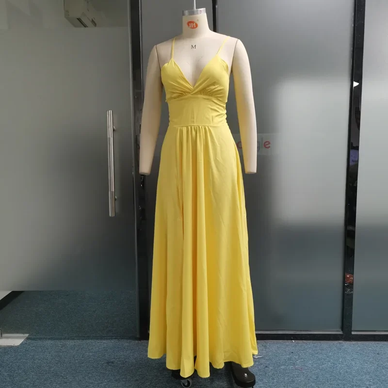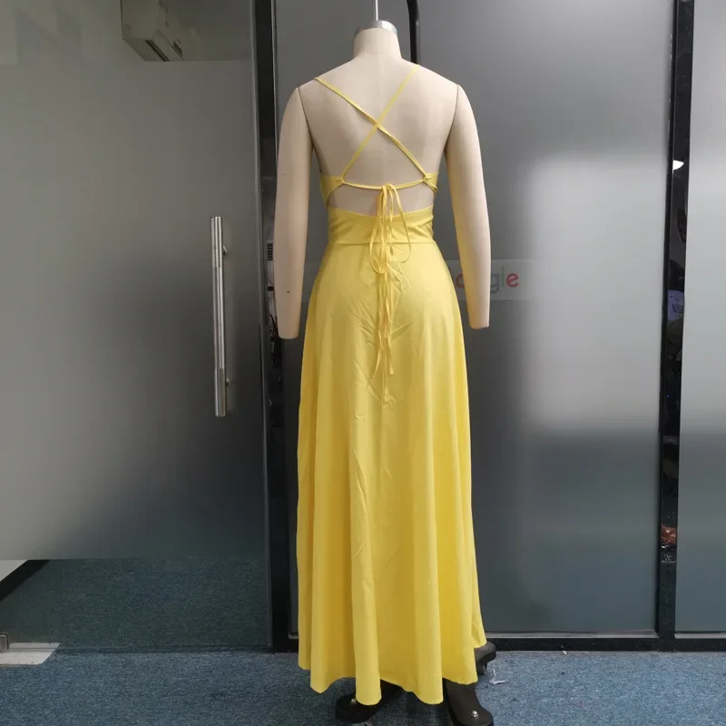 Fashionable Long V-Neck Backless Strap Dress Summer 2023 Cross-Border Women's Clothing Sleeveless Split Design Elegant Gown