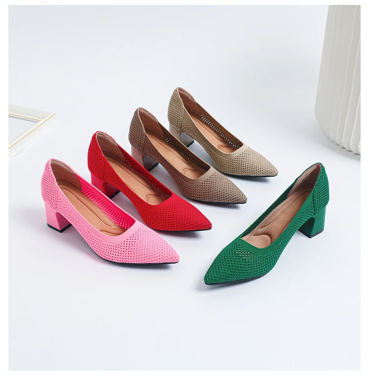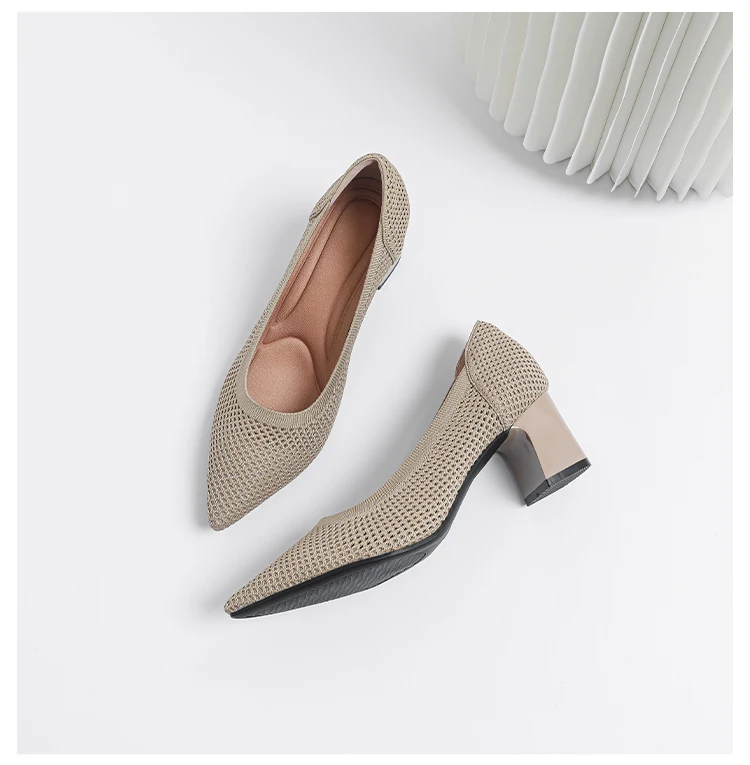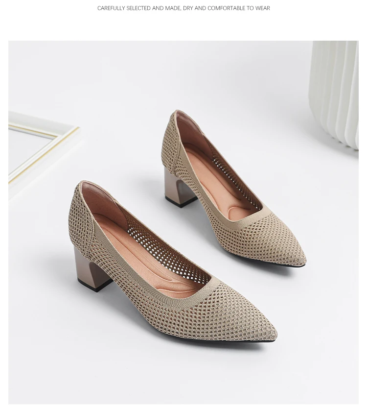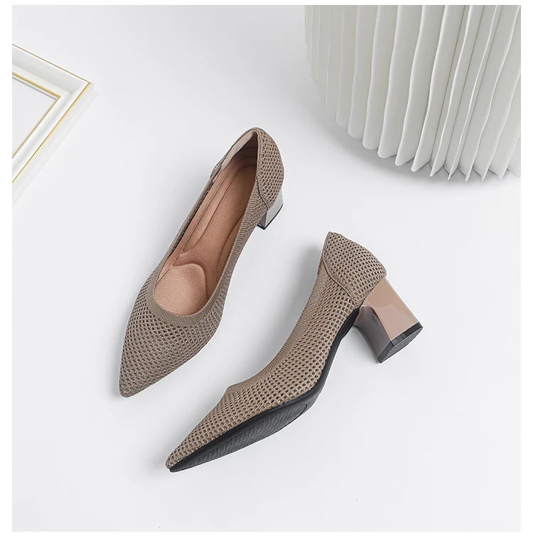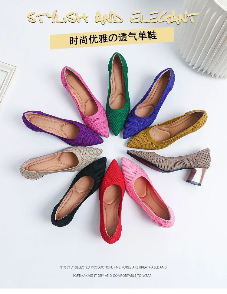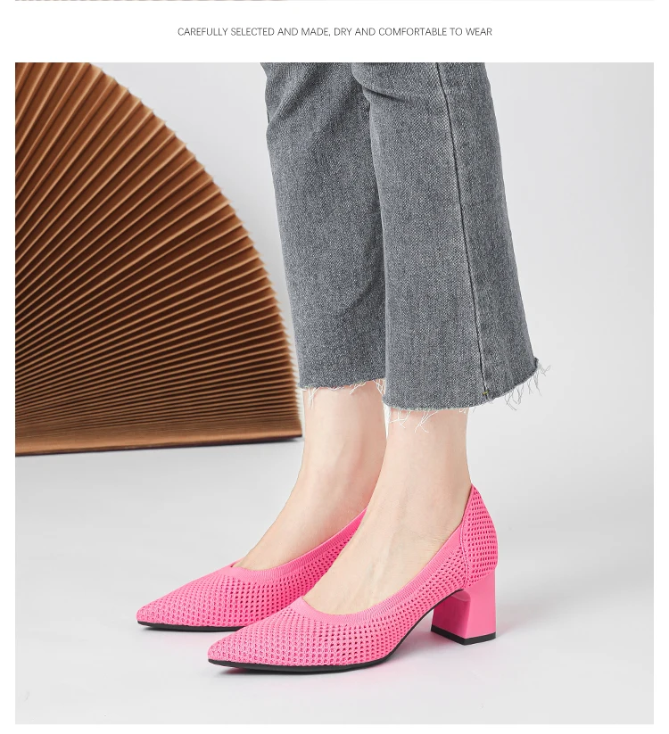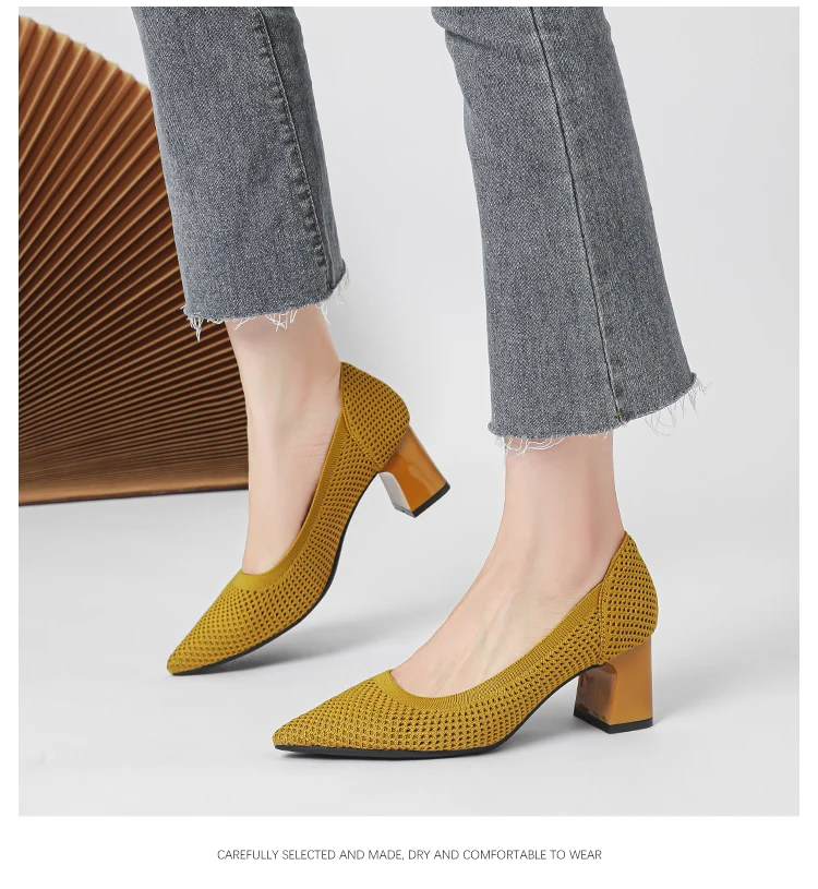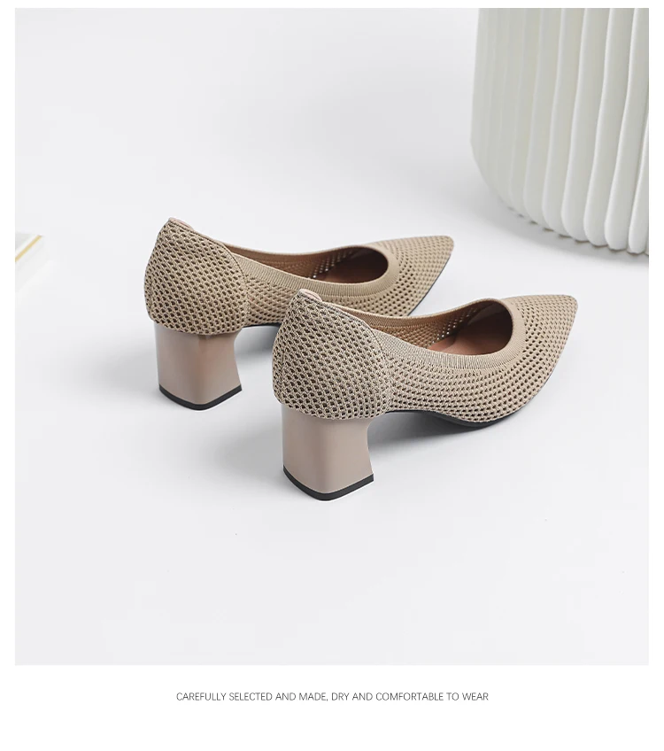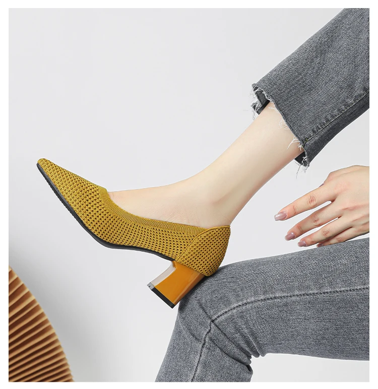 High Heel Women's 2025 Spring and Autumn New Soft Knitted Breathable and Comfortable Shoes