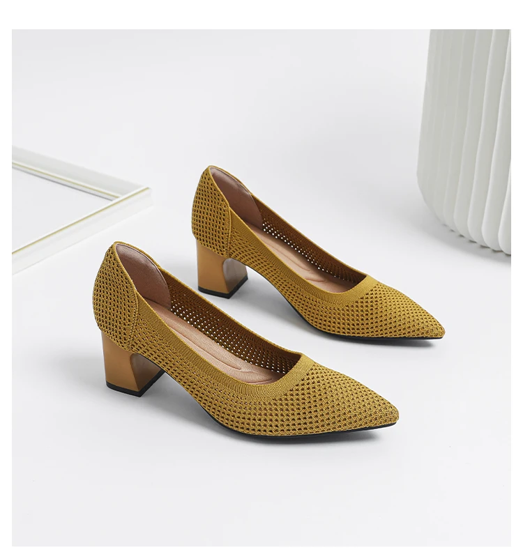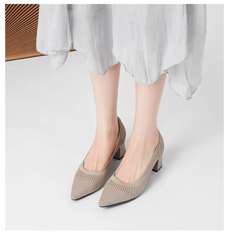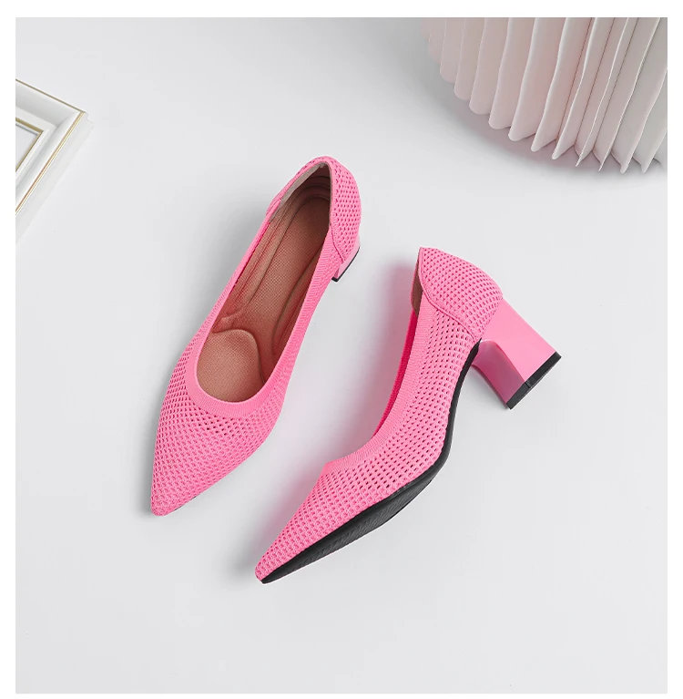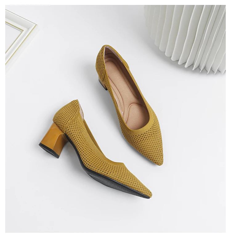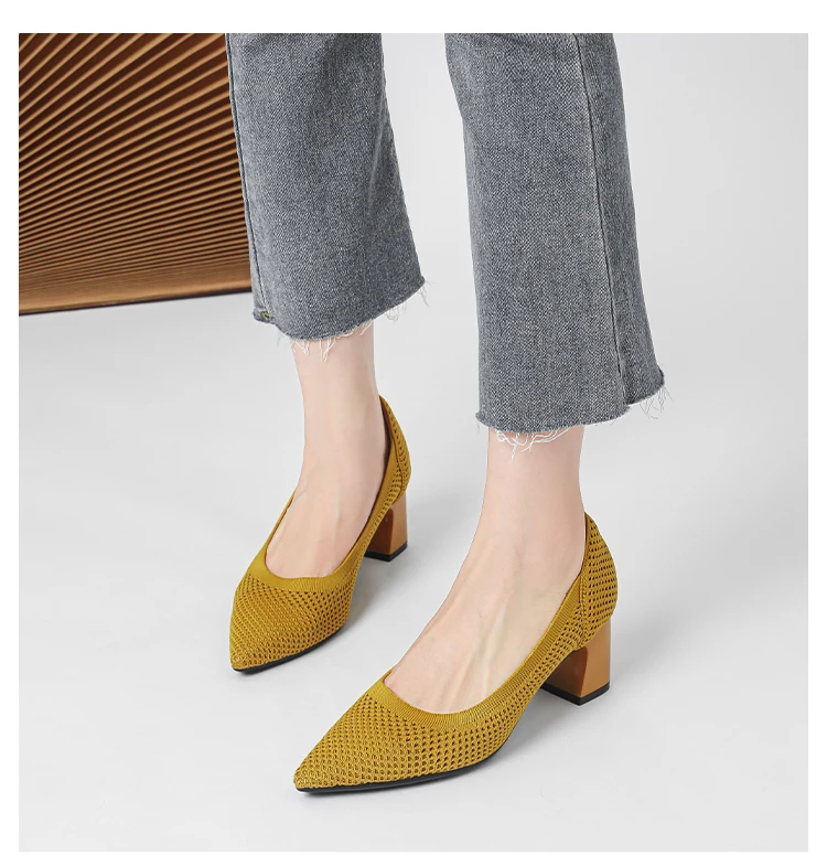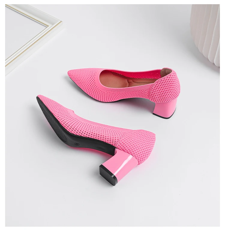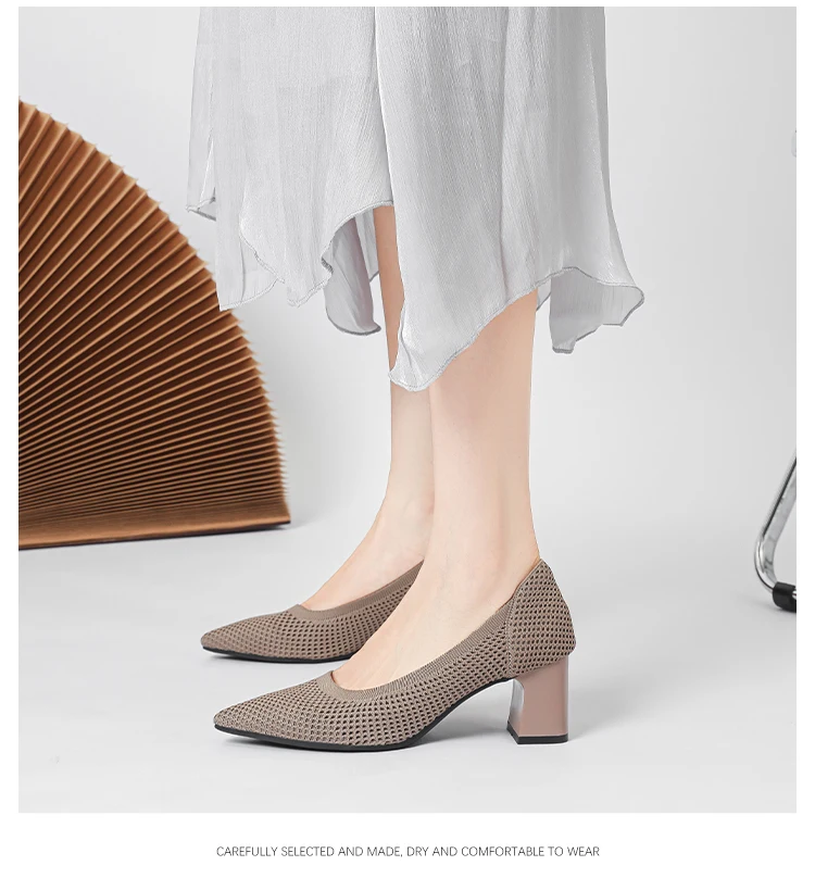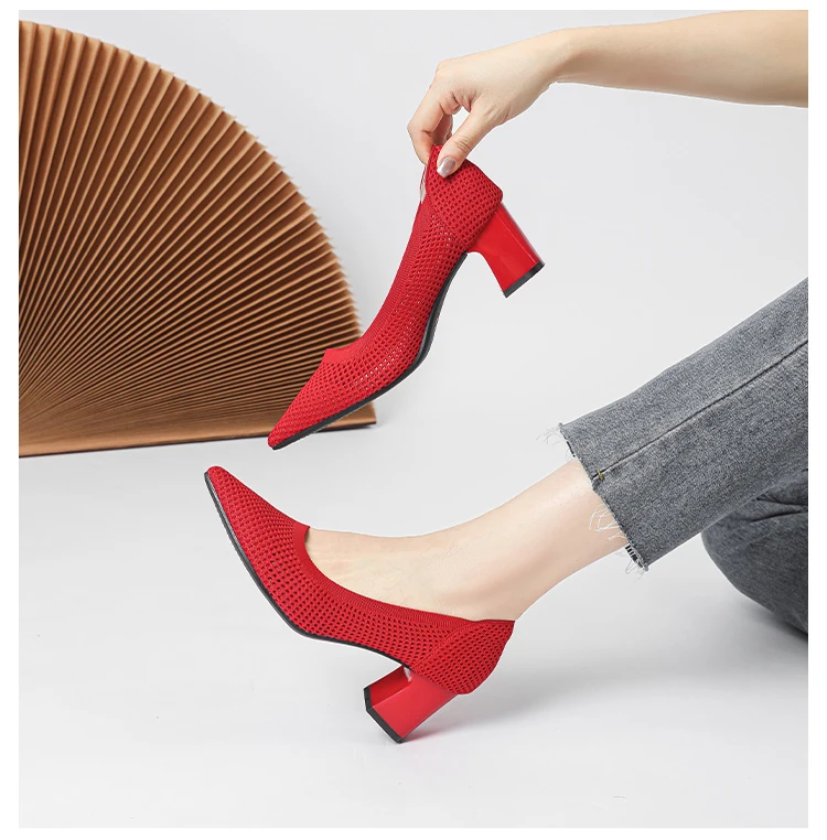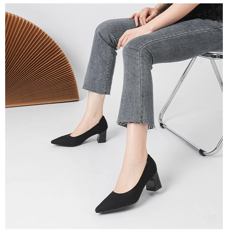High Heel Women's 2025 Spring and Autumn New Soft Knitted Breathable and Comfortable Shoes
