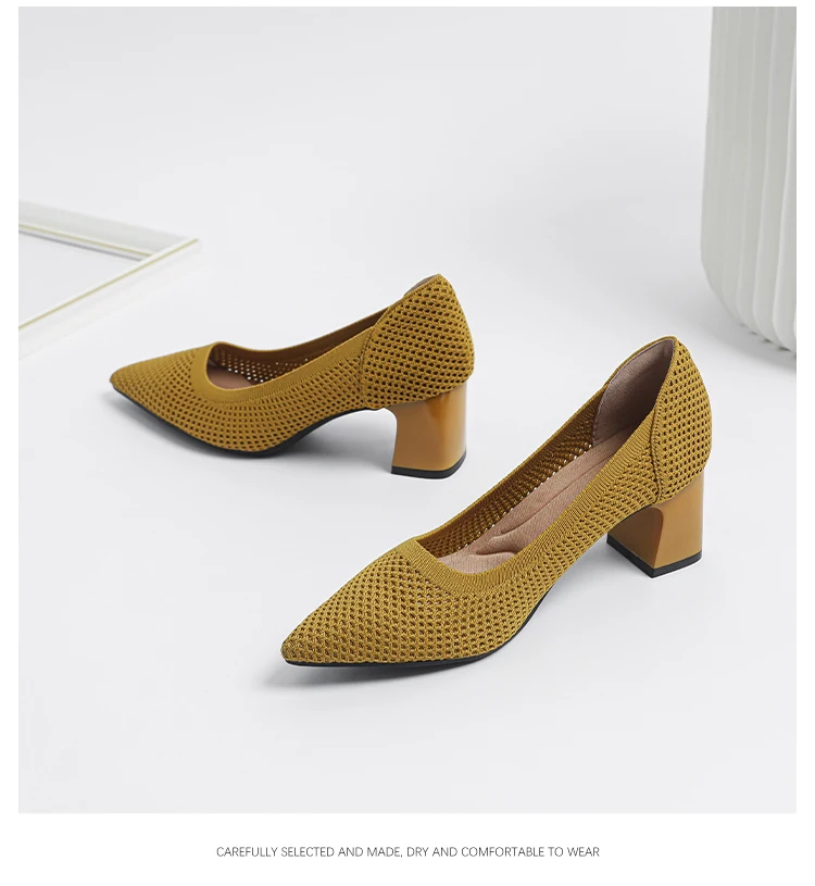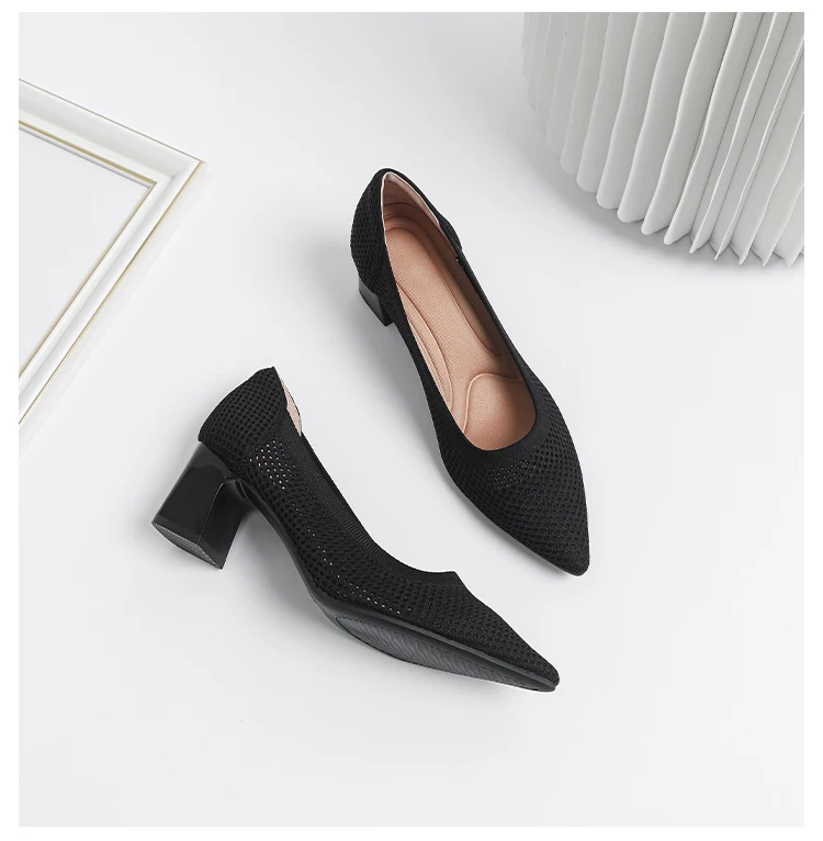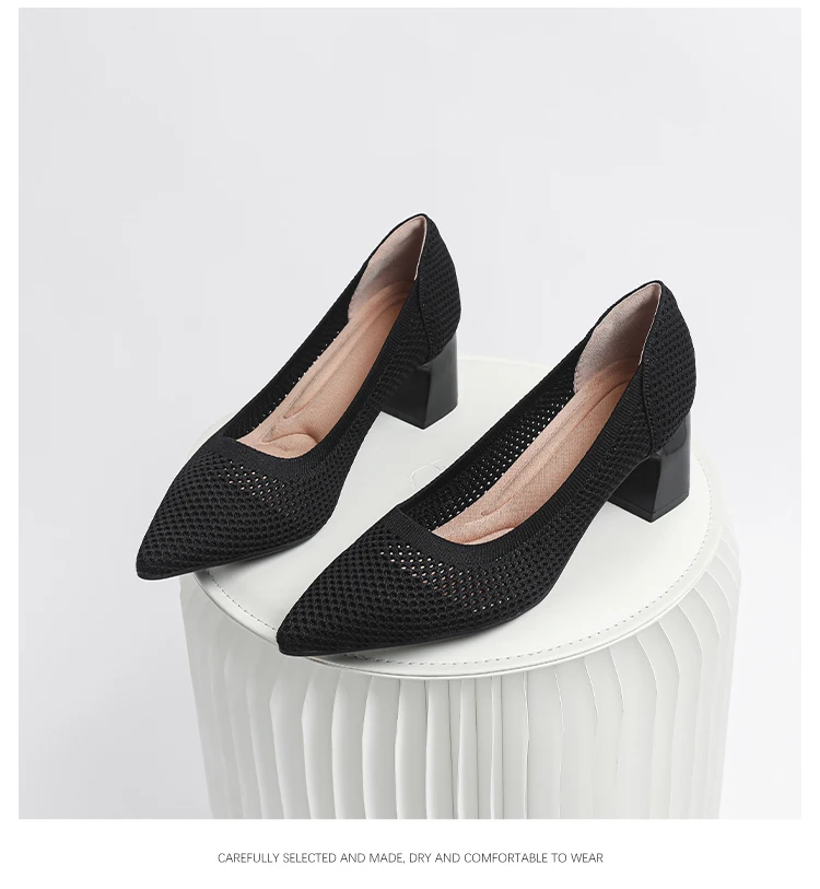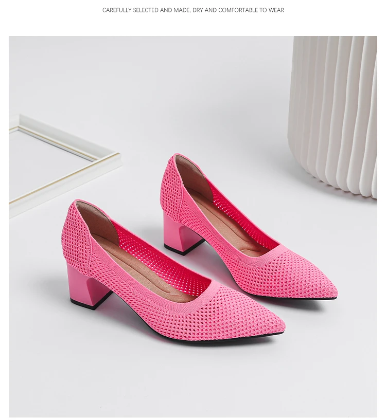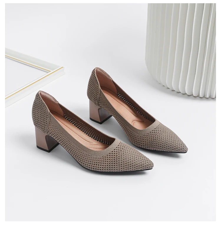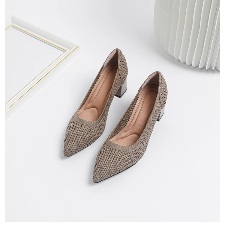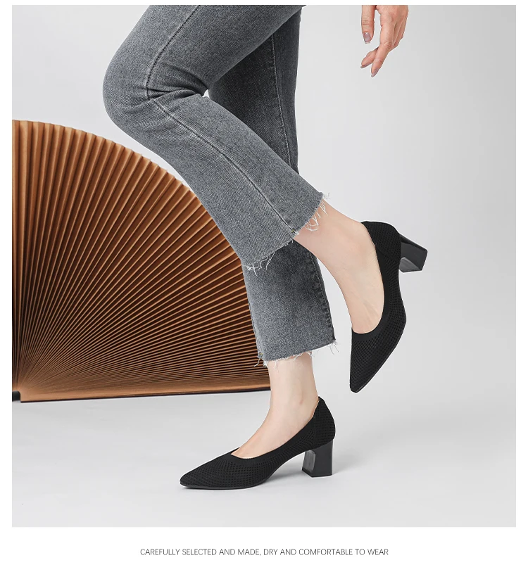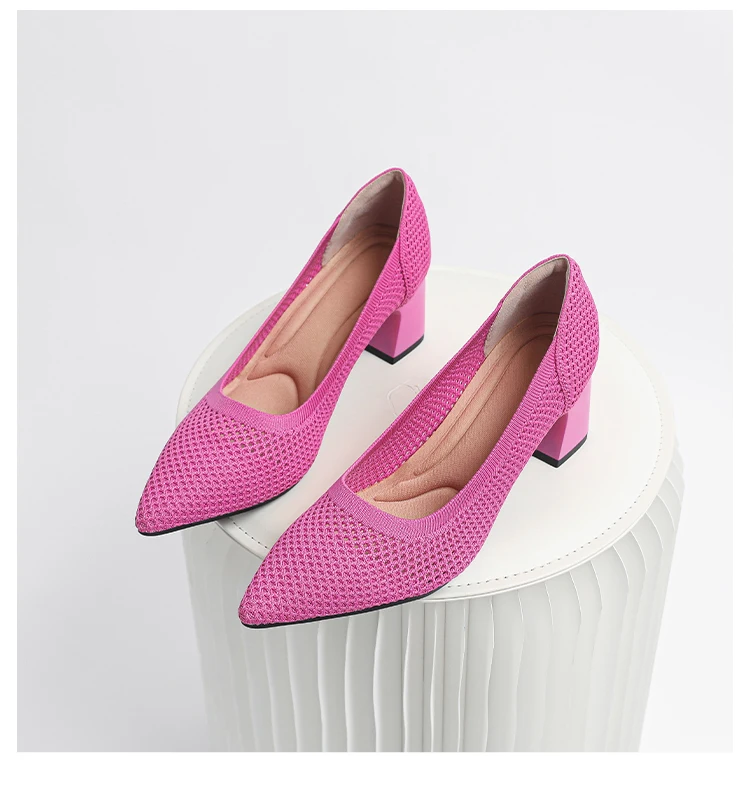 High Heel Women's 2025 Spring and Autumn New Soft Knitted Breathable and Comfortable Shoes