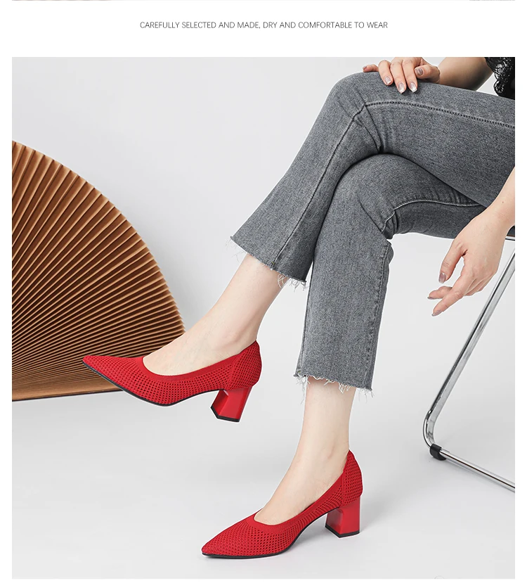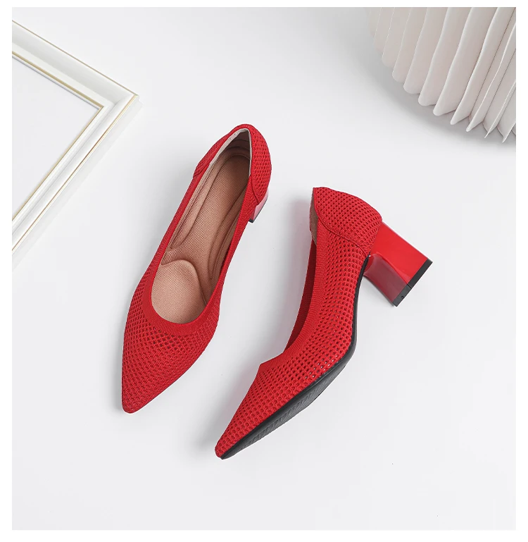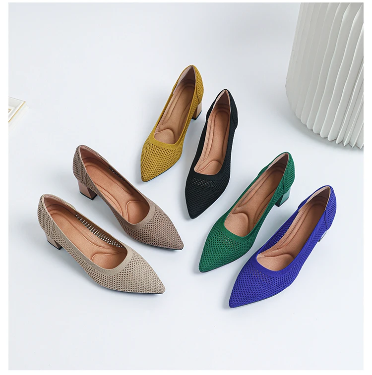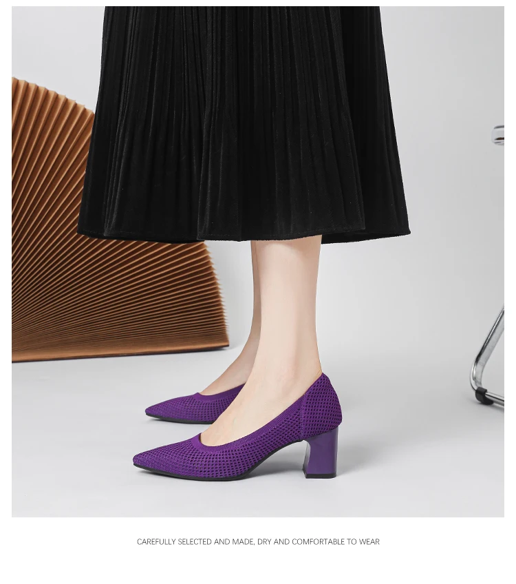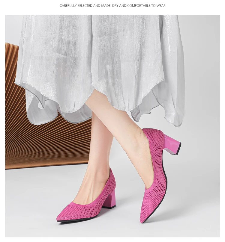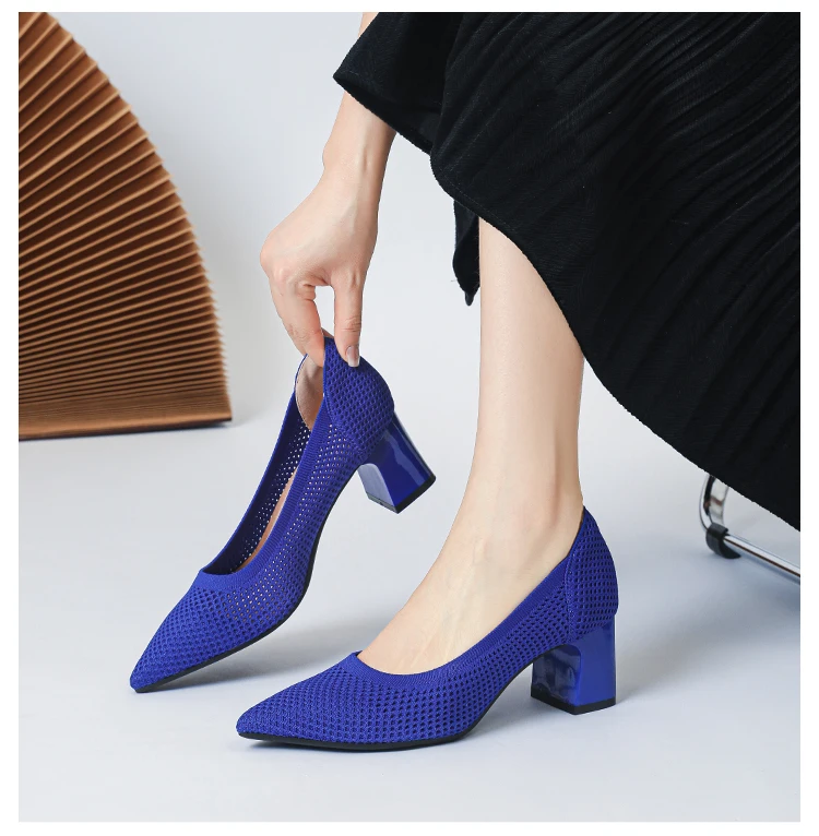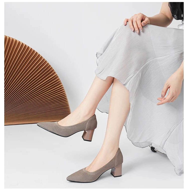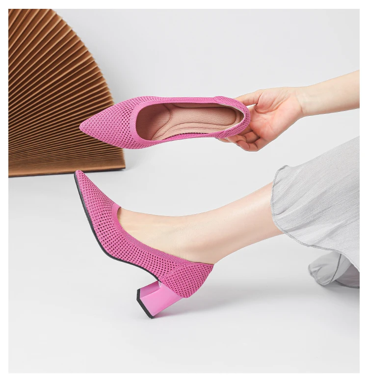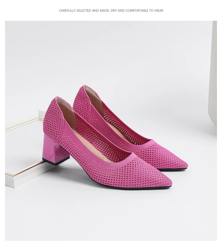High Heel Women's 2025 Spring and Autumn New Soft Knitted Breathable and Comfortable Shoes