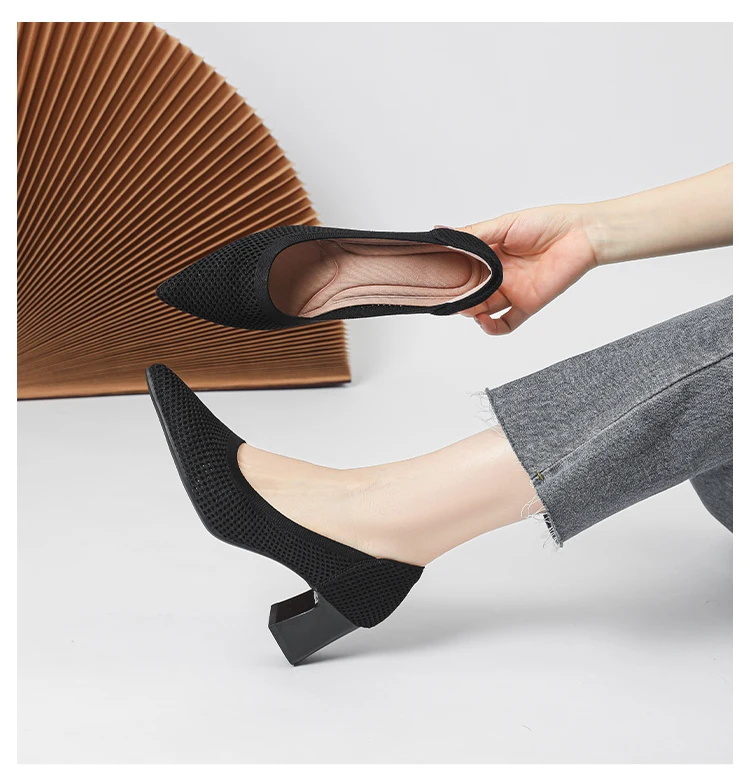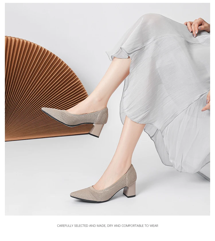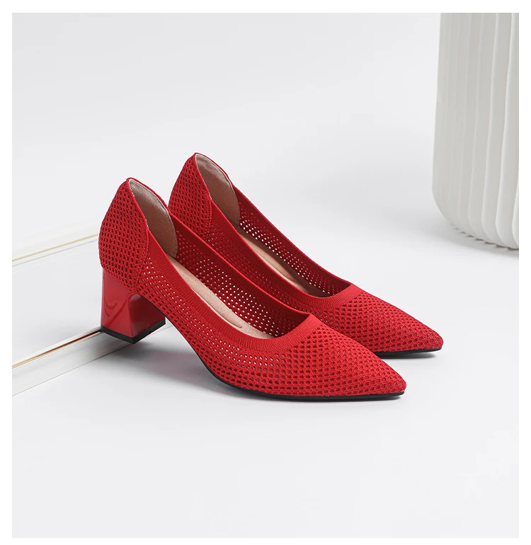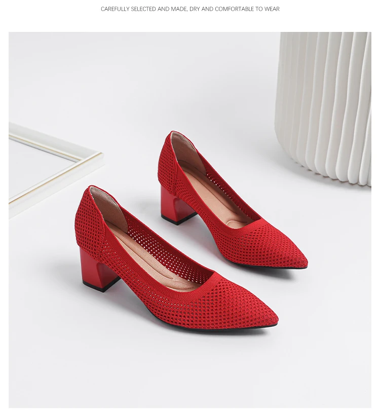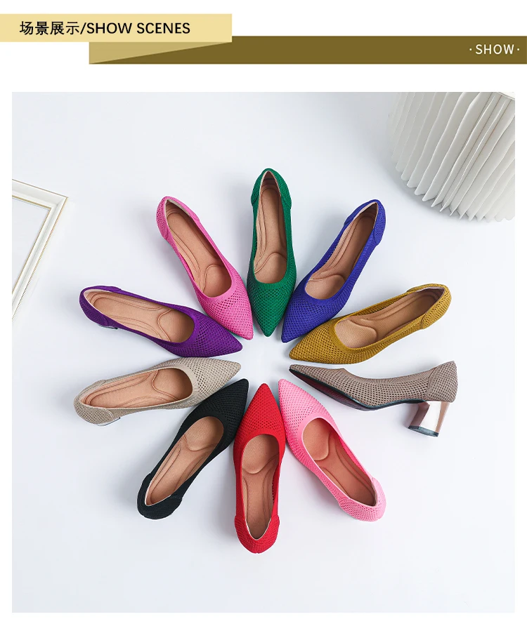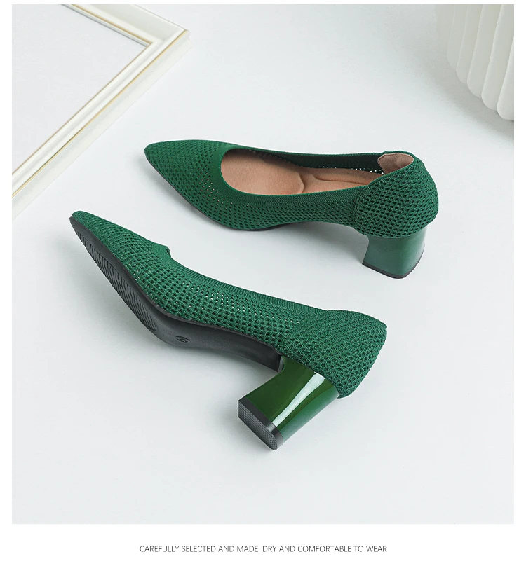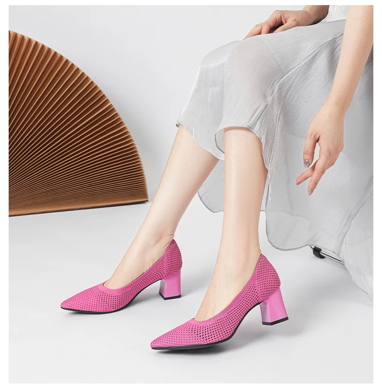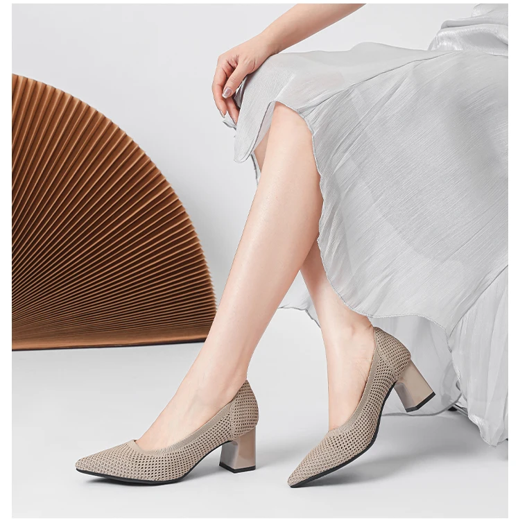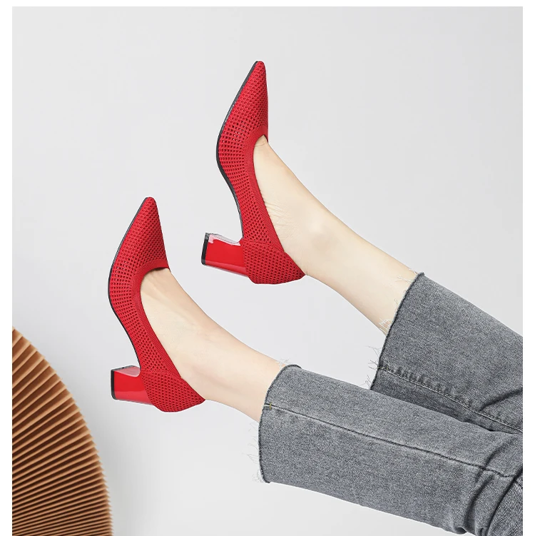 High Heel Women's 2025 Spring and Autumn New Soft Knitted Breathable and Comfortable Shoes