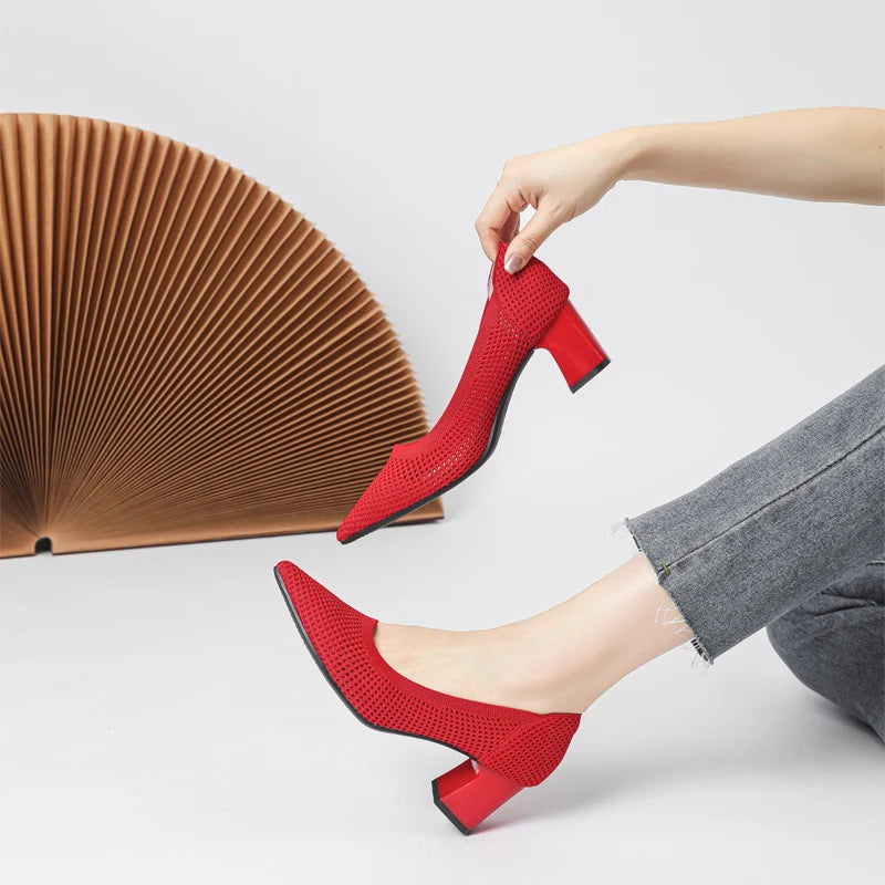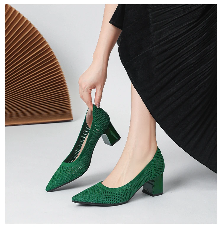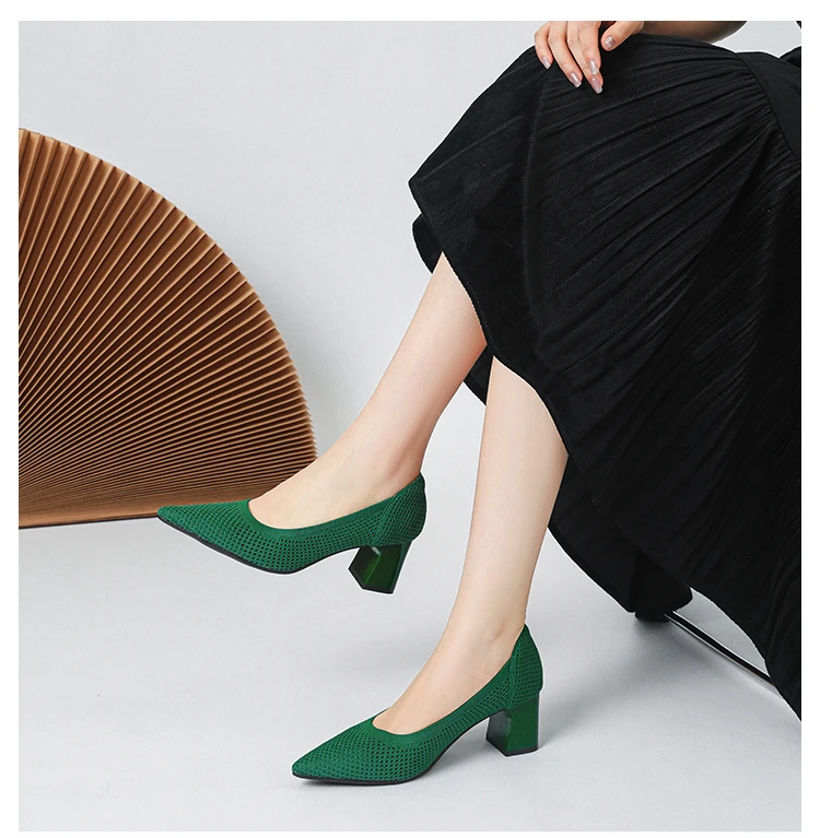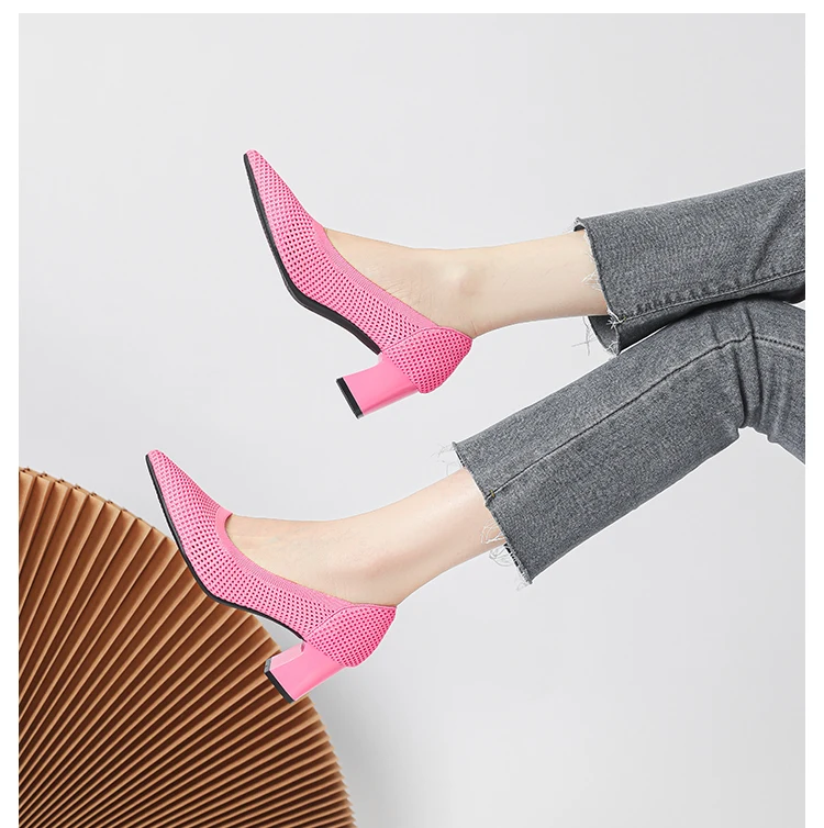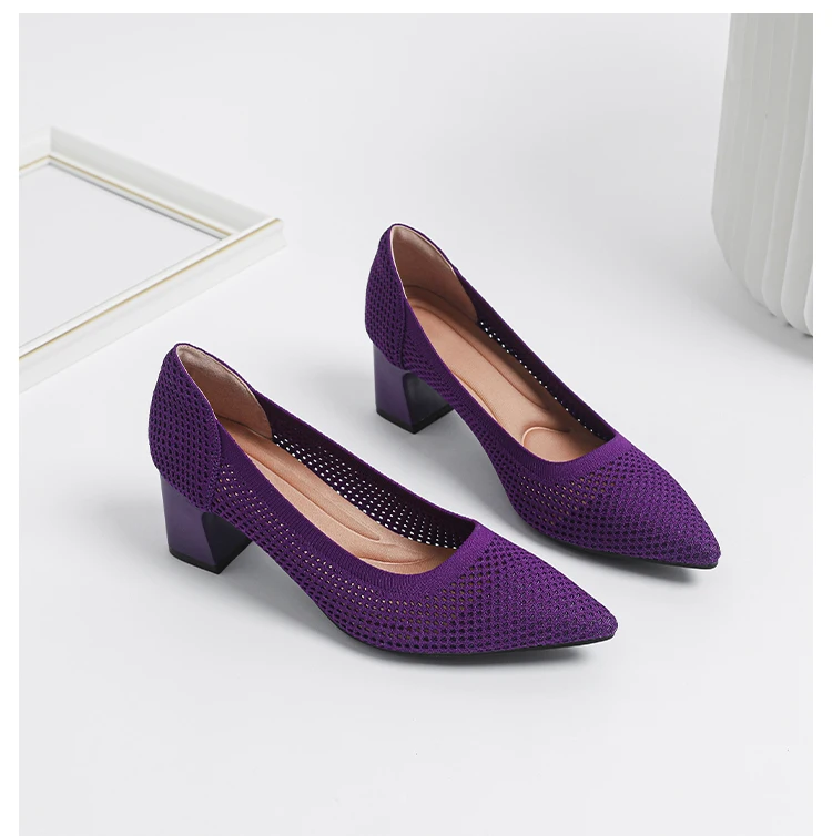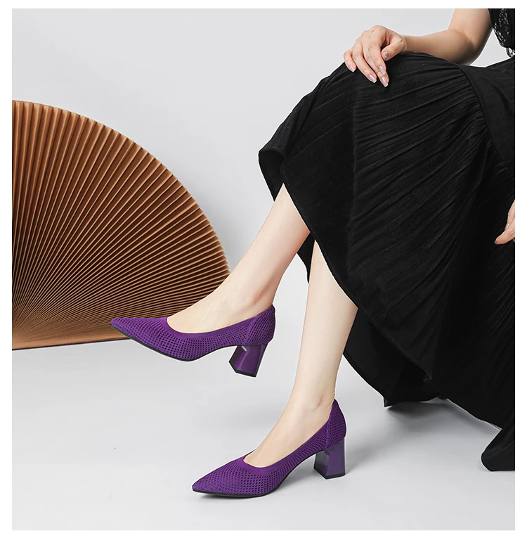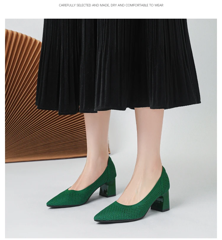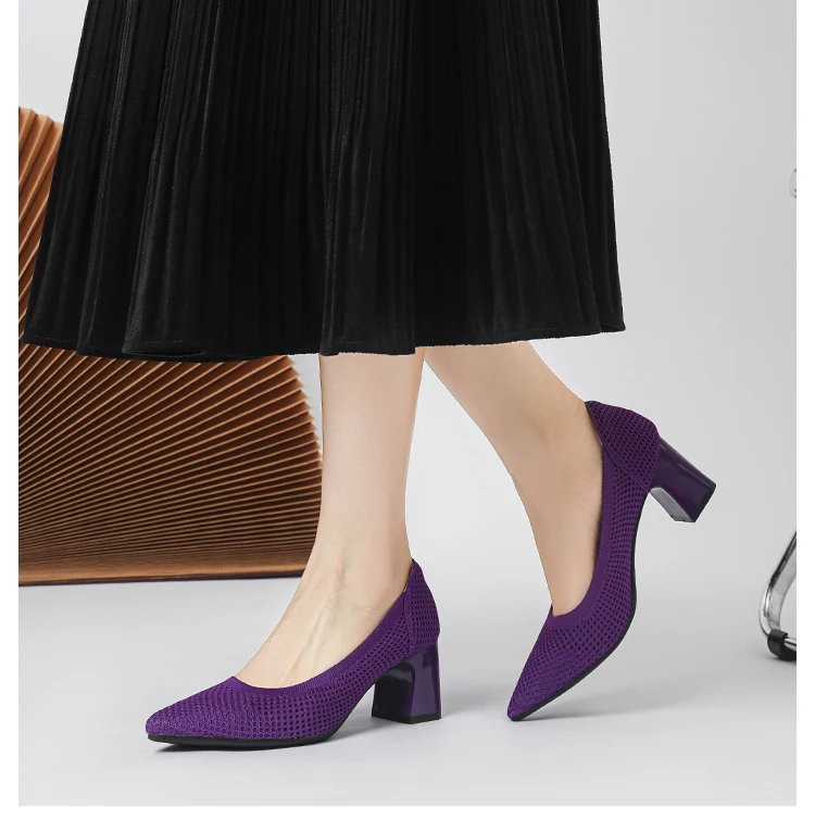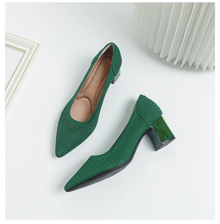 High Heel Women's 2025 Spring and Autumn New Soft Knitted Breathable and Comfortable Shoes