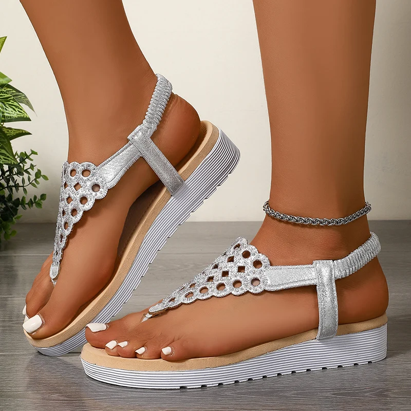 Hollow Out Clip Toe Wedge Sandals for Women 2025 Summer Lightweight Non Slip Beach Shoes Woman Silver Platform Roman Sandalias