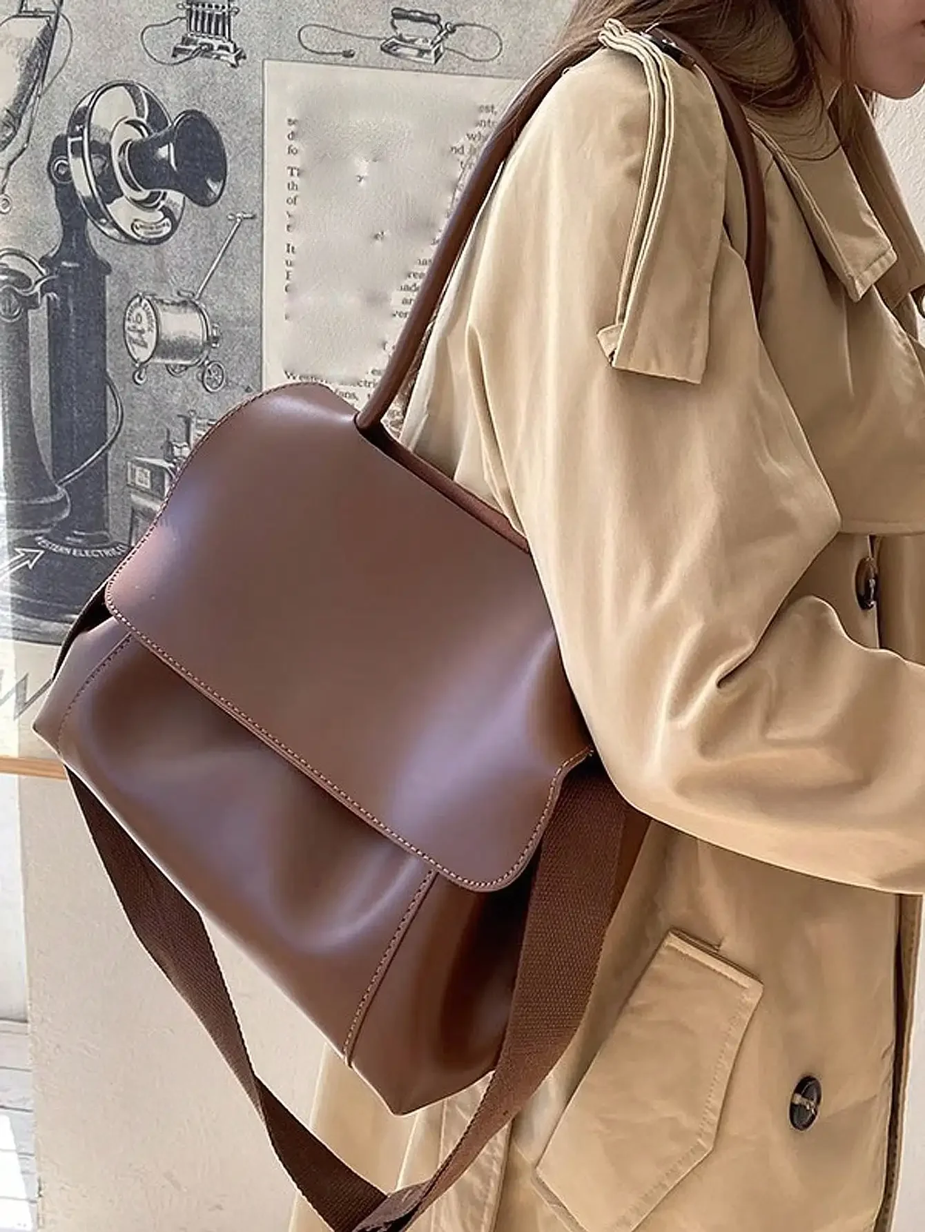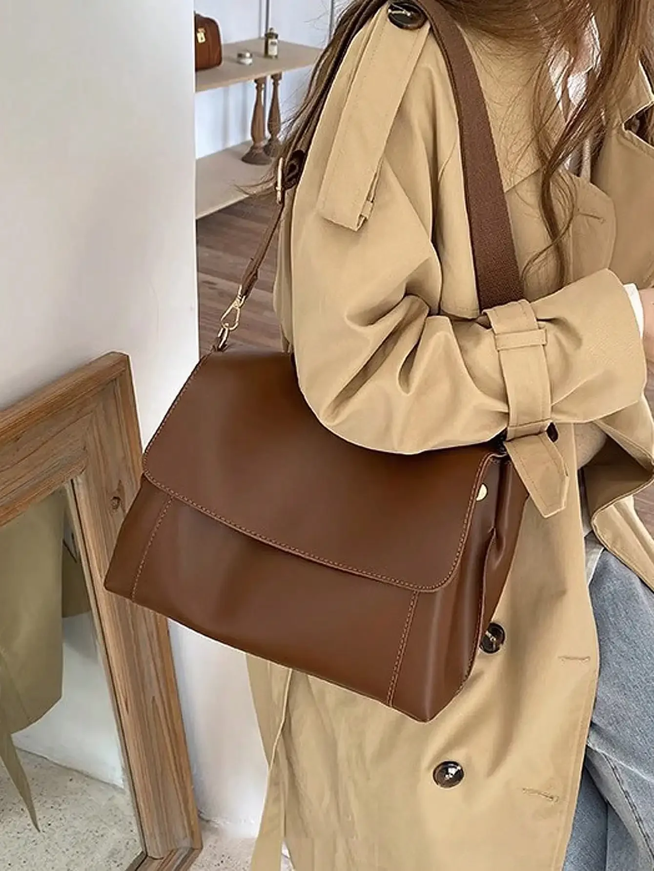 Korean -Style Retro Brown Bag,Briefcase - Like Large Capacity,Single Shoulder Crossbody Handbag, Trendy Commute & Casual Choice