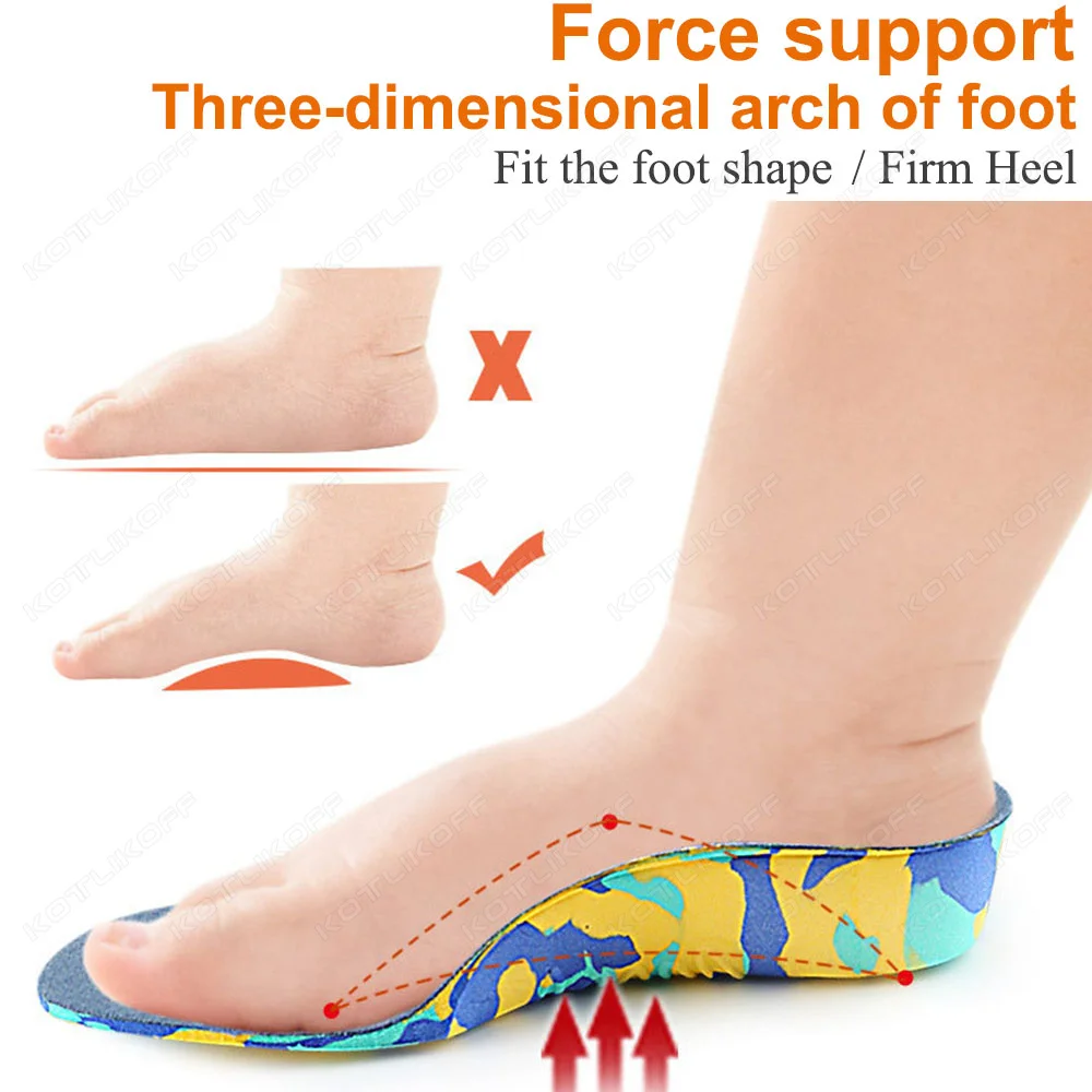 KOTLIKOFF Kids Orthopedic Sport Insoles Deodorization Breathable Sweat Shock Absorbant Flatfoot Childrens Shoe Cushion Insert