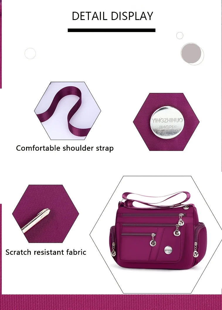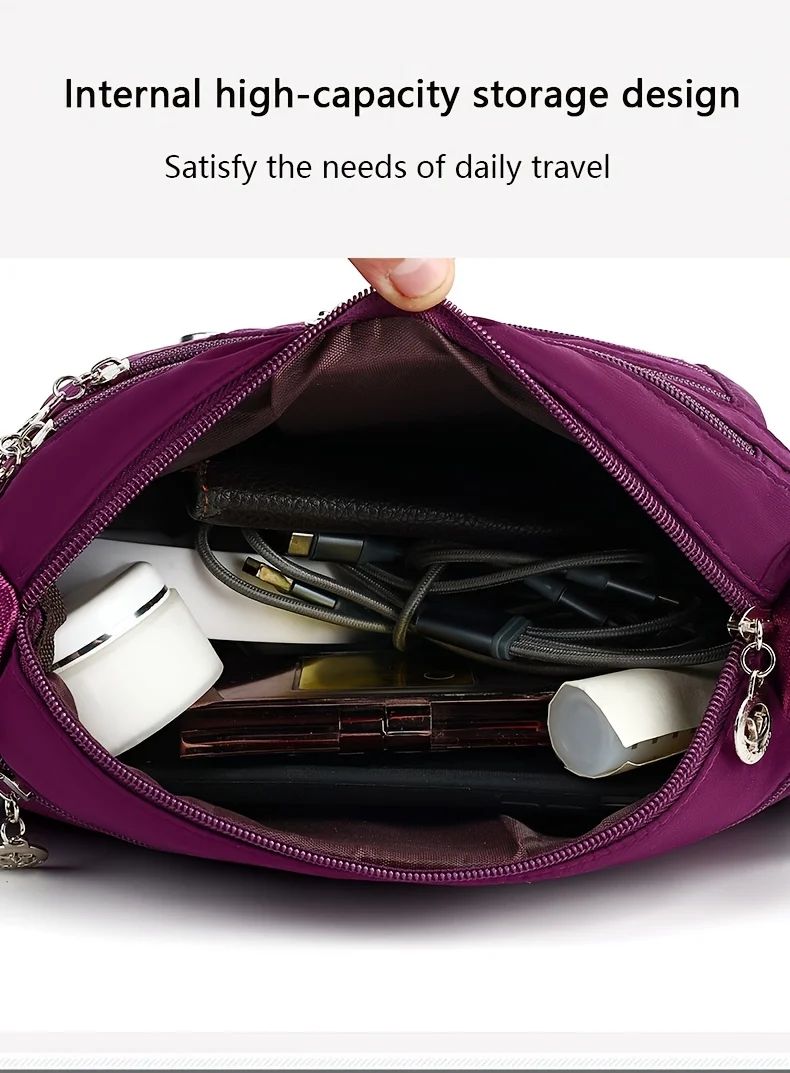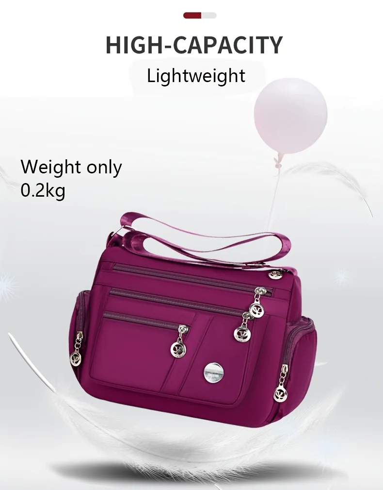 Lightweight Nylon Crossbody Bag for Women , Casual Style, Adjustable Strap, Zip Closure, Multi-Compartment Storage