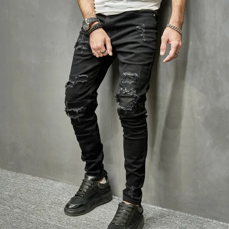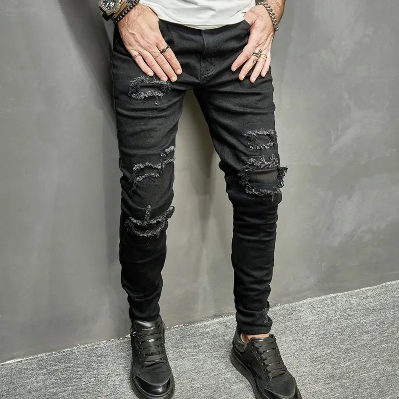 Men Long Pant Denim Pants Jeans Straight Trousers Sheath Slim Fit Pockets Casual Regular High Waist Splice Autumn Winter