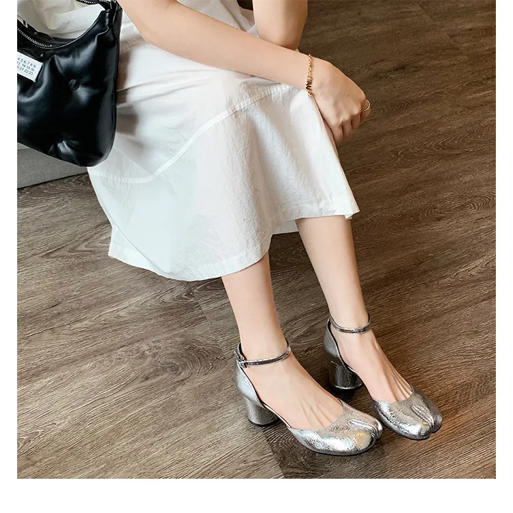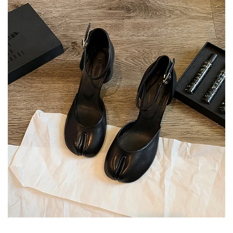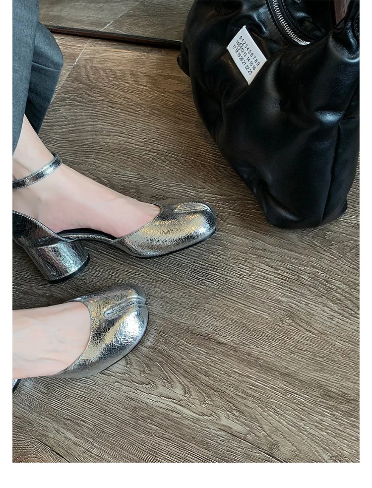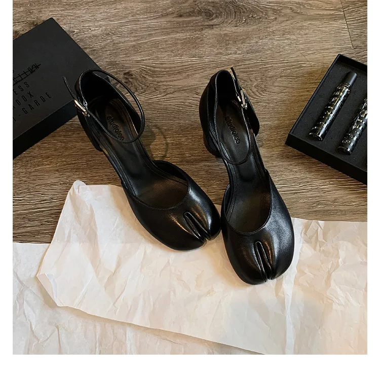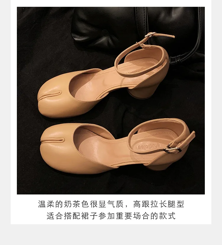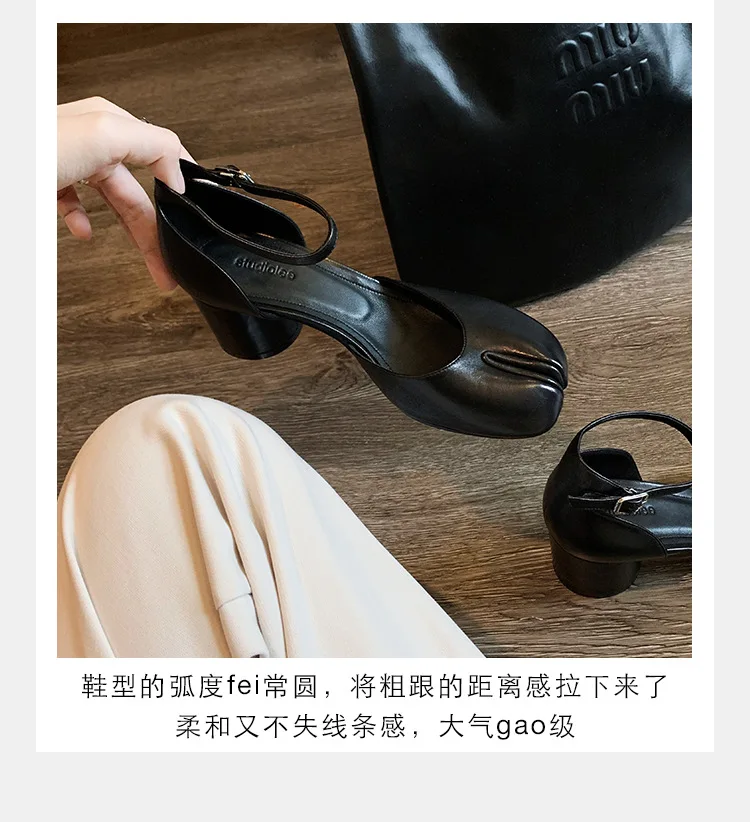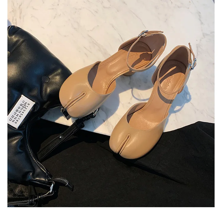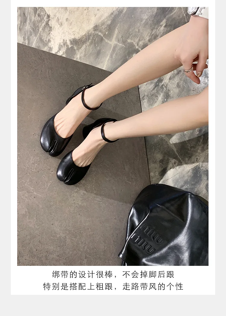 Modern Heels Pumps Women Round High Heel Leather Square Split Toe Pumps Shoes Spring Summer Sandals Mary Janes Shoes Heels Women