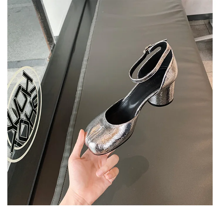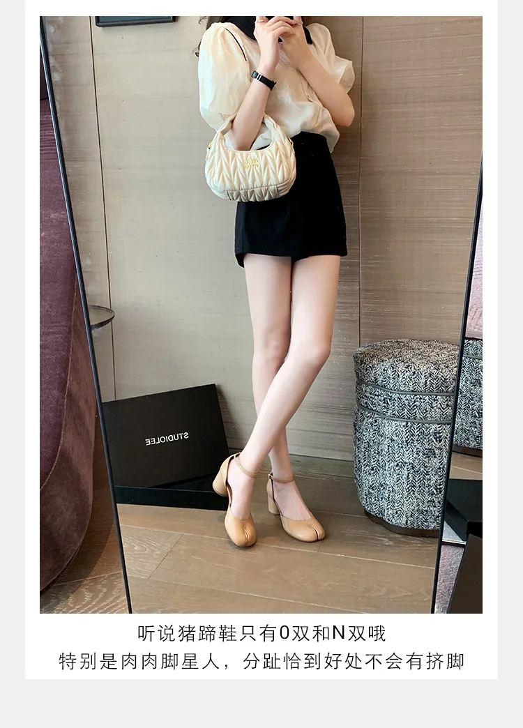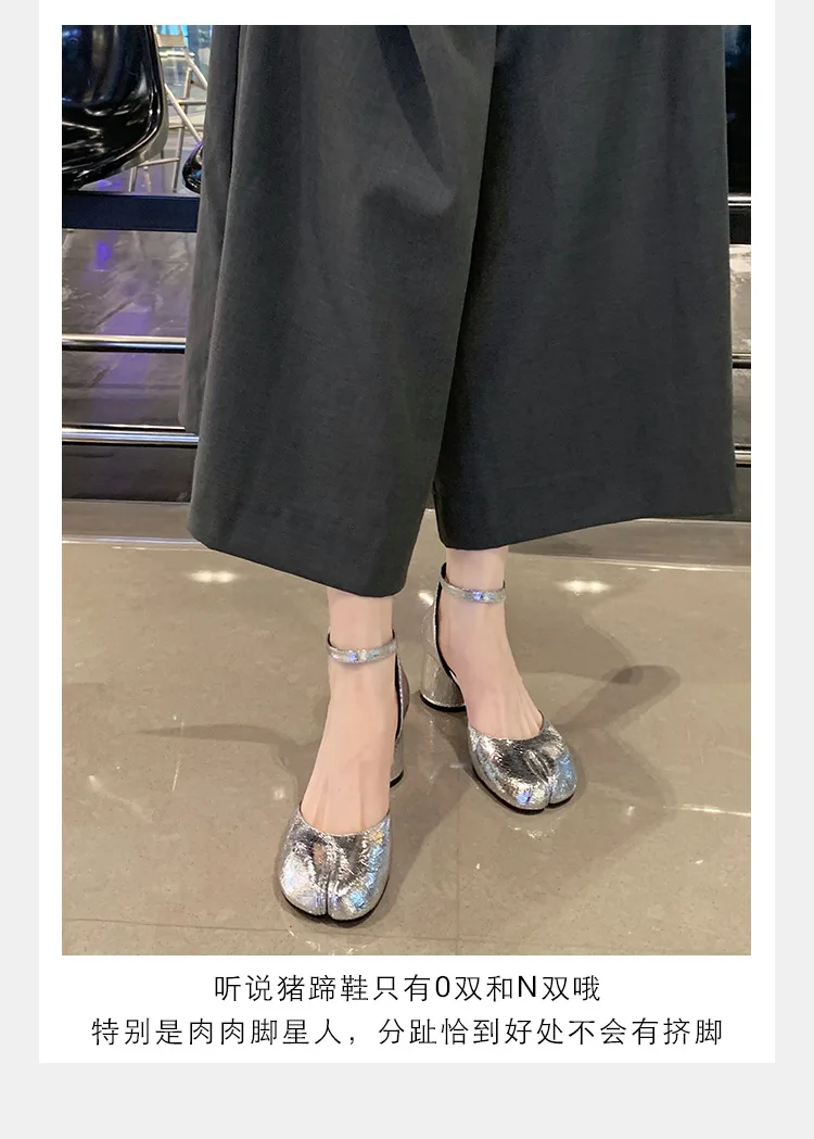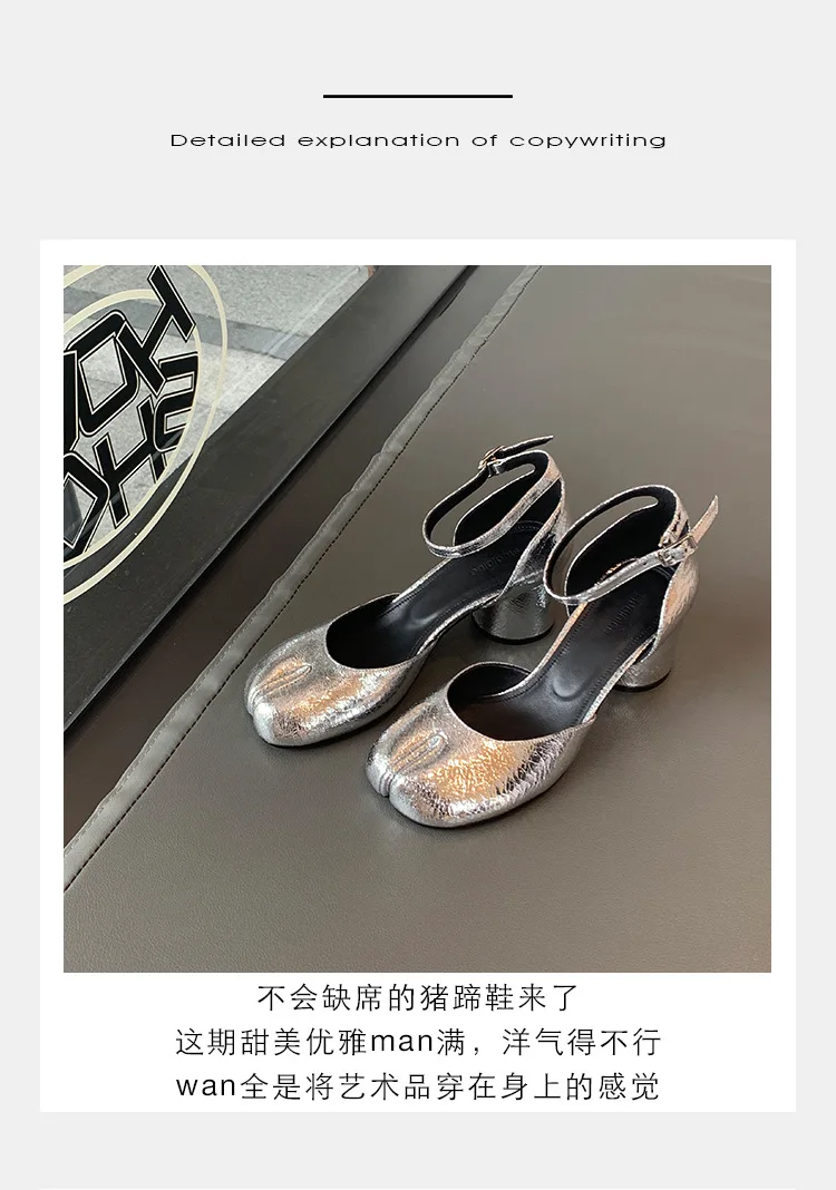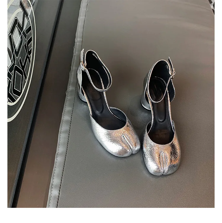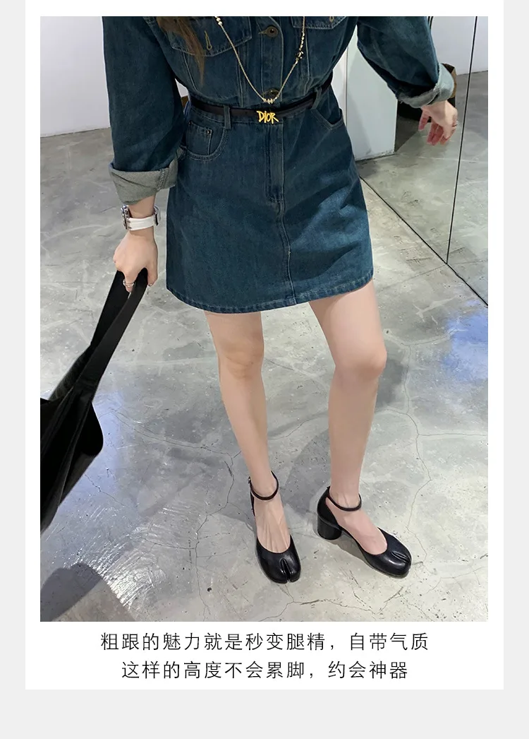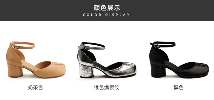 Modern Heels Pumps Women Round High Heel Leather Square Split Toe Pumps Shoes Spring Summer Sandals Mary Janes Shoes Heels Women