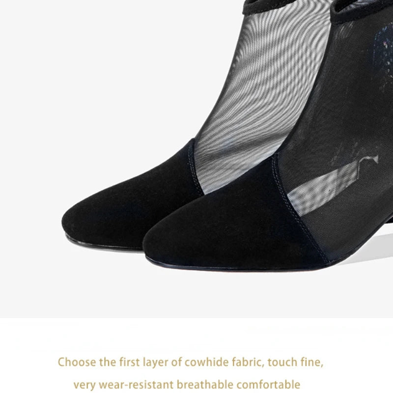 New Mesh Sandals Summer Women's Ankle Boot Mid Heel Rhinestone Toe Shoes Women's heels Luxury Sexy Women