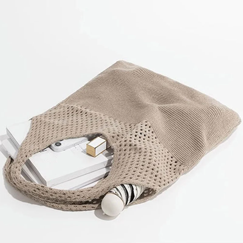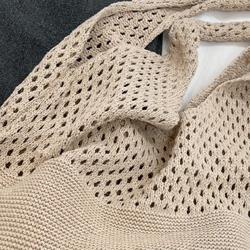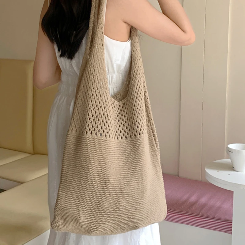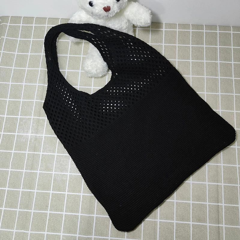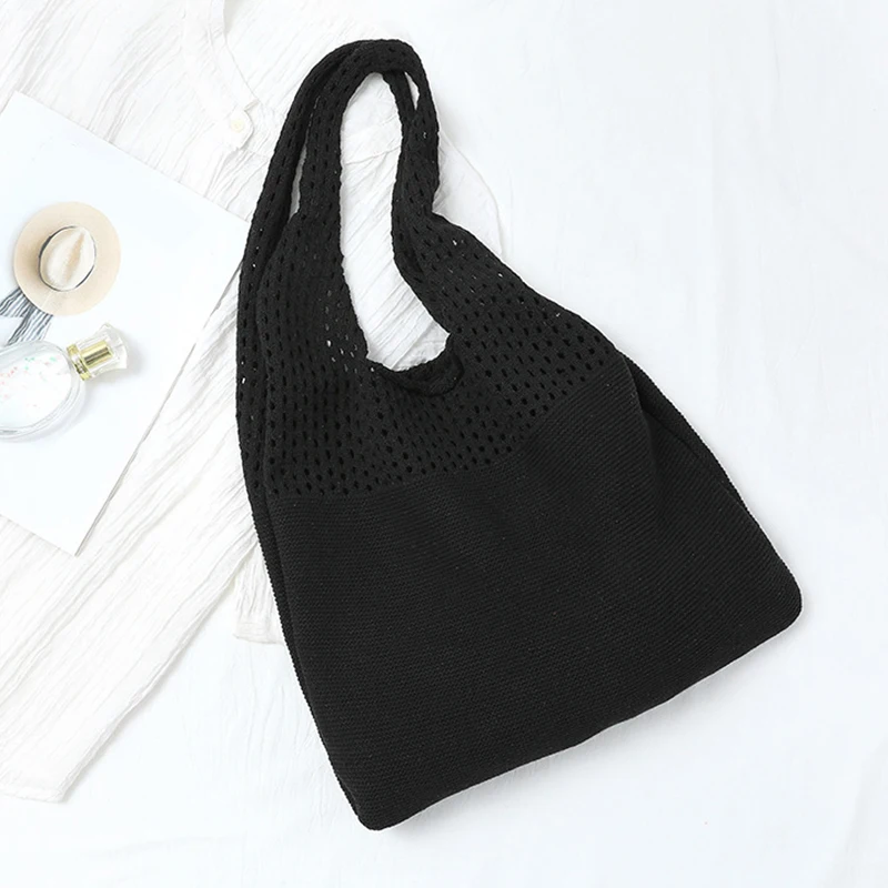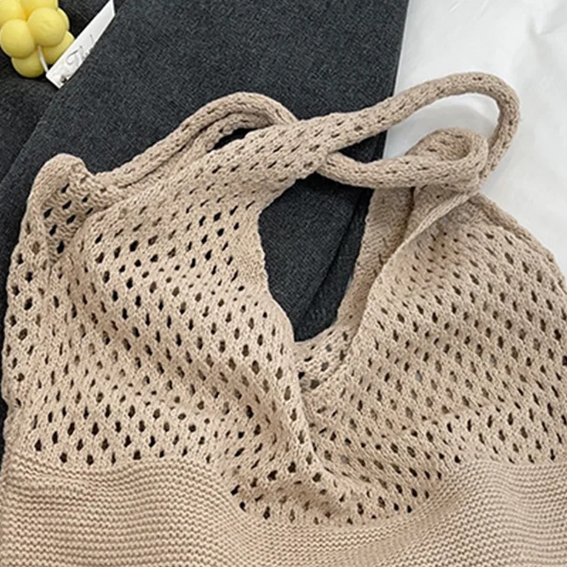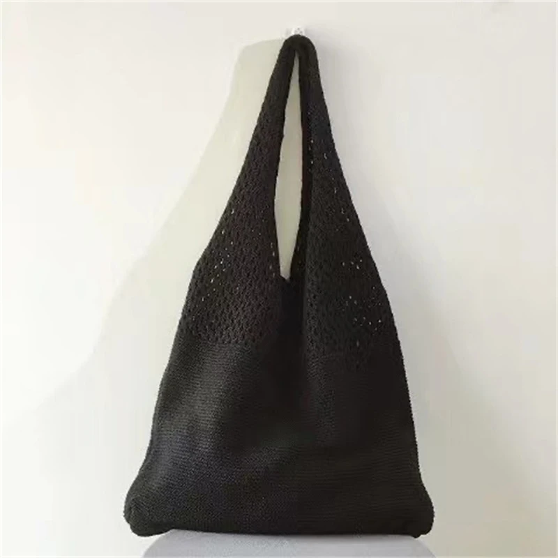 New Trend Women's Bag Crochet Handbag Retro Knitted Braid Solid Color Hollow Black Khaki Top-handle Tote Bag Shopper