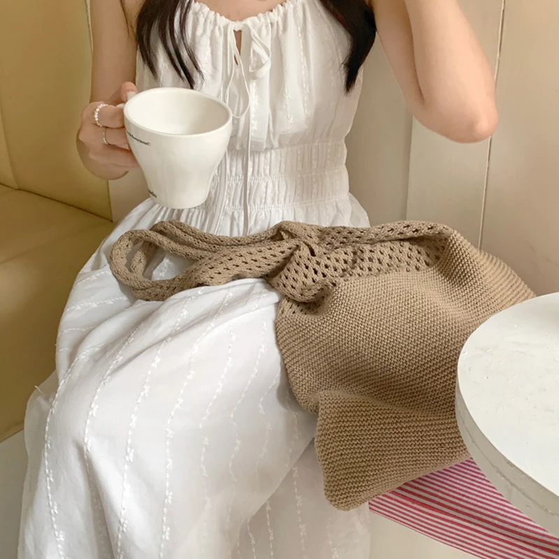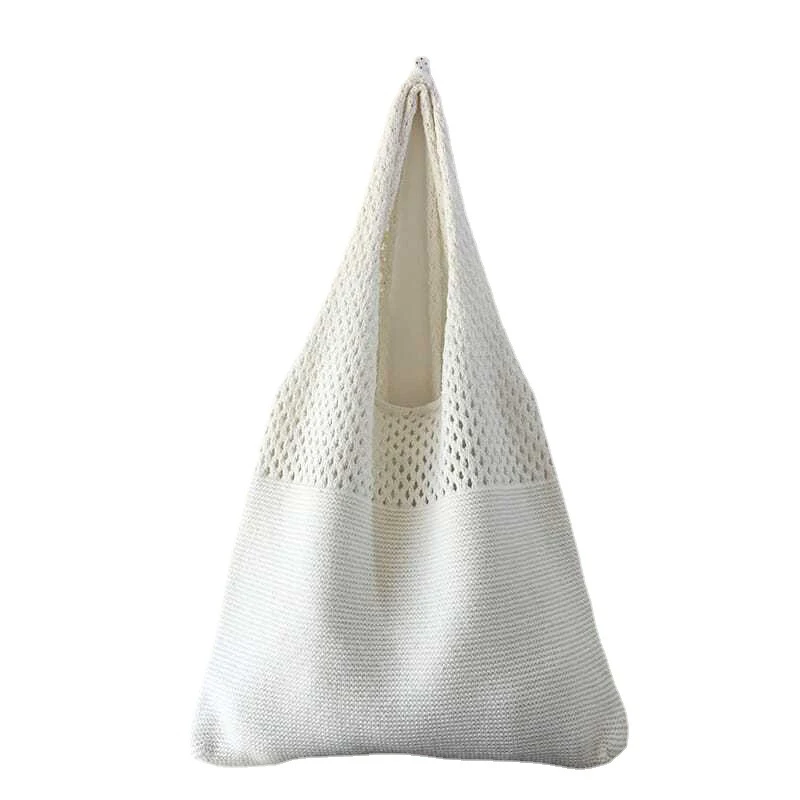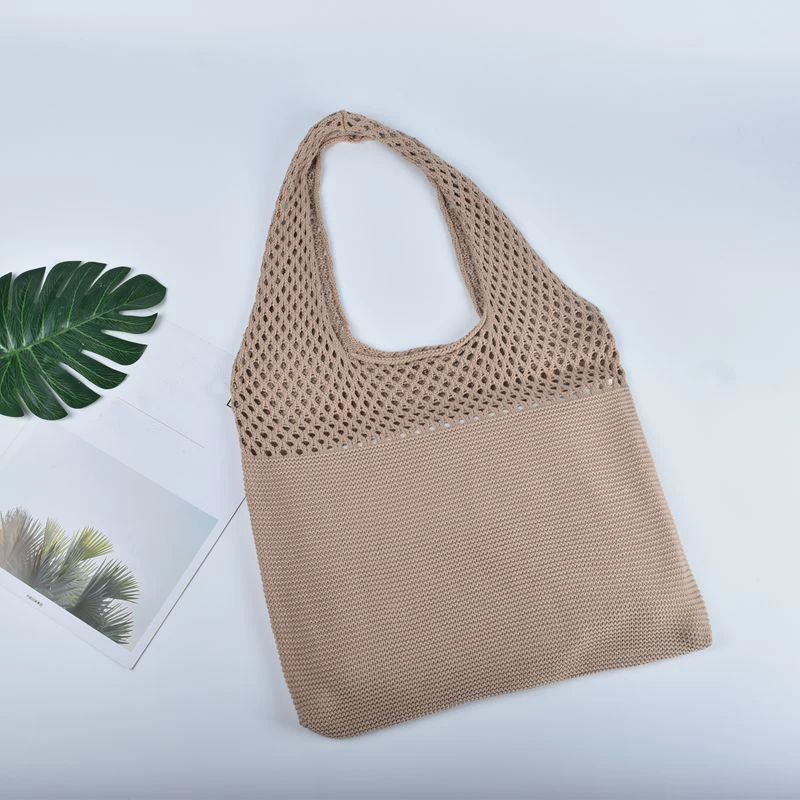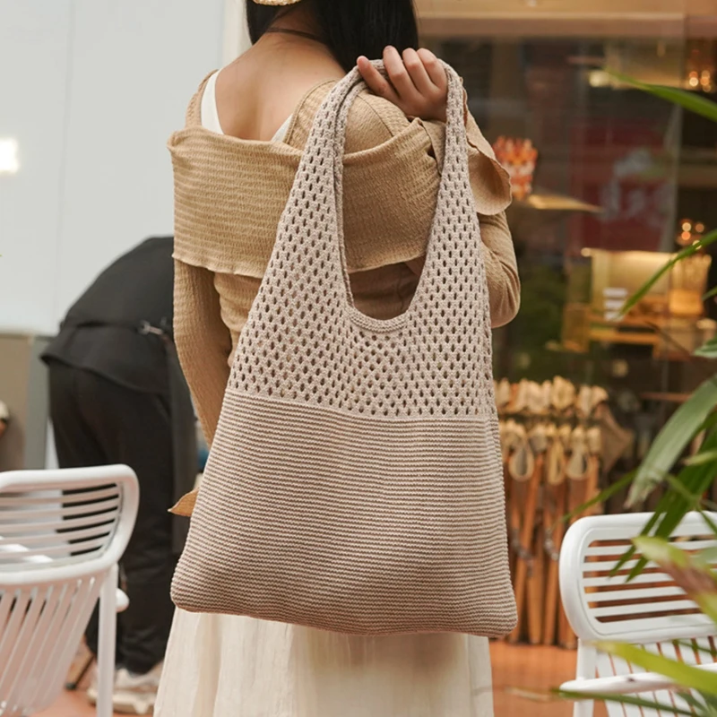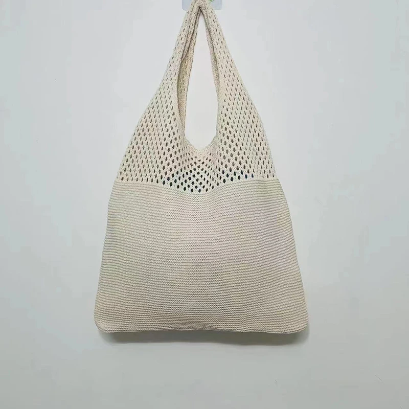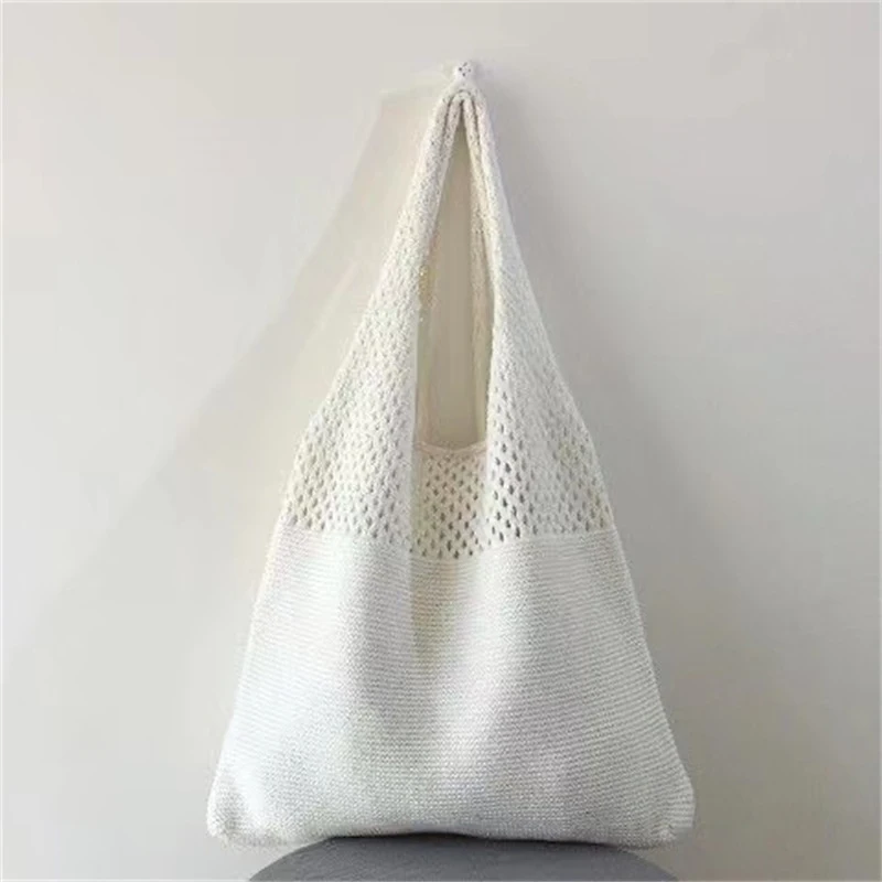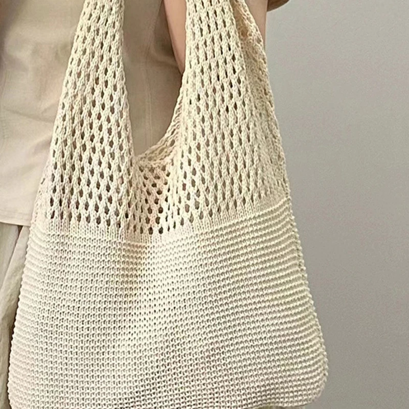 New Trend Women's Bag Crochet Handbag Retro Knitted Braid Solid Color Hollow Black Khaki Top-handle Tote Bag Shopper