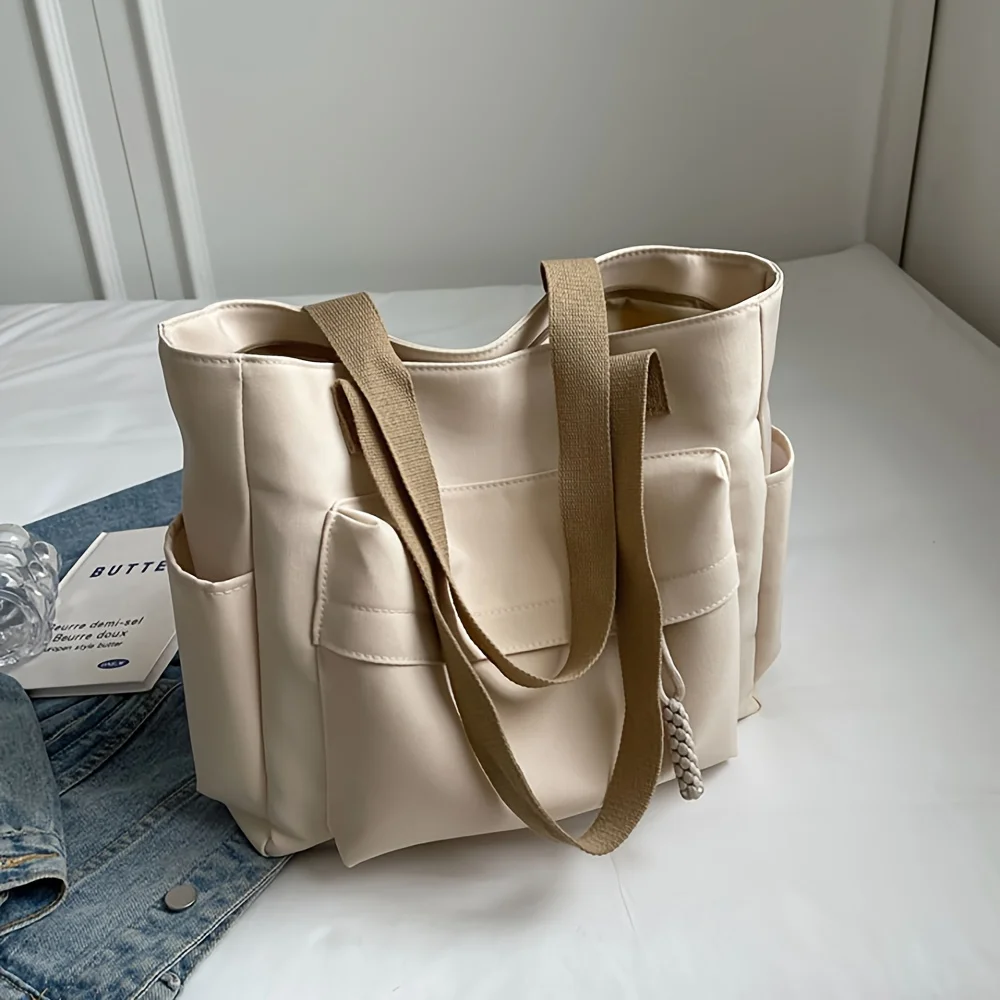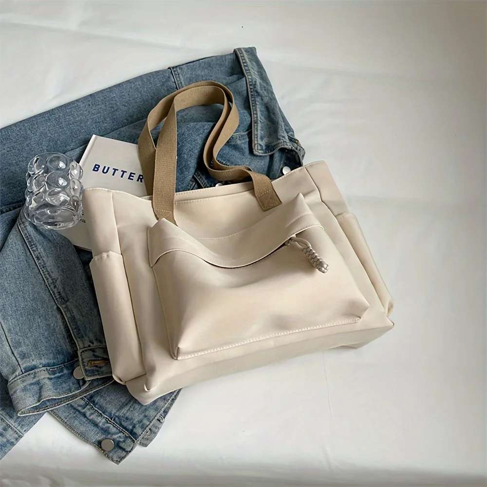 Nylon Tote Bag with Multiple Pocket Lightweight Foldable Design for Office Commute Shopping Fitness Storage Handbag Shoulder Bag