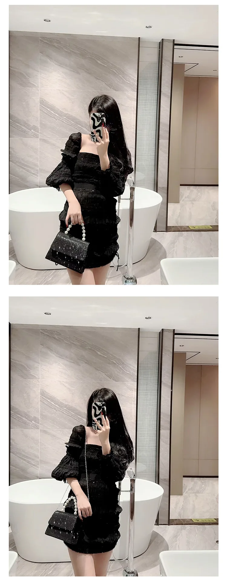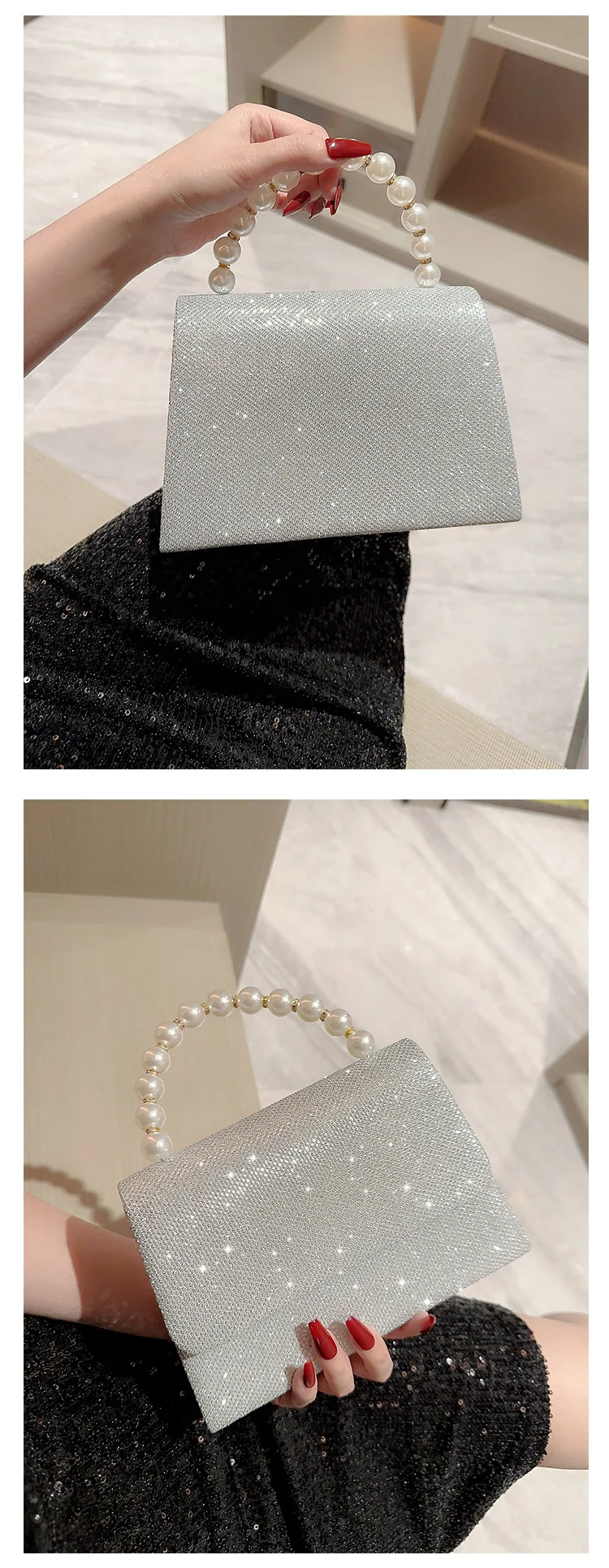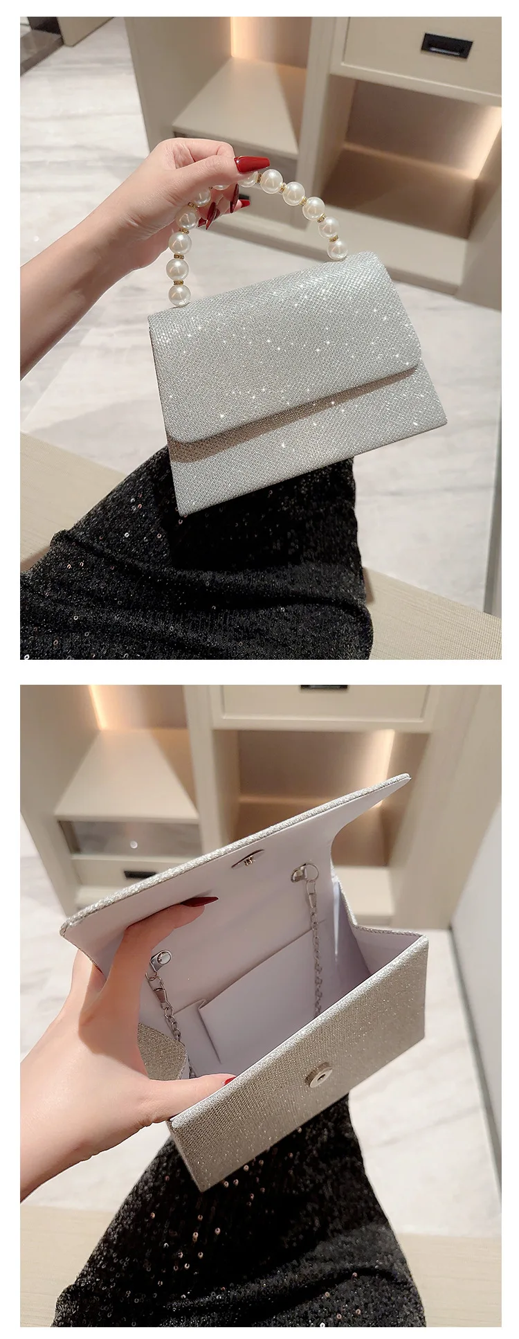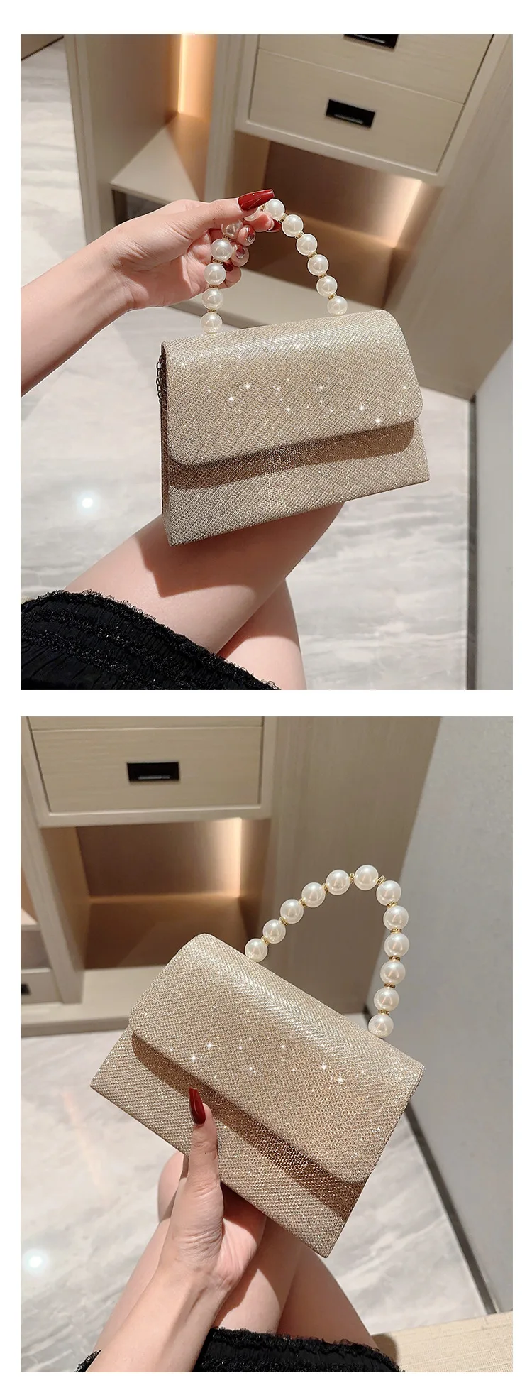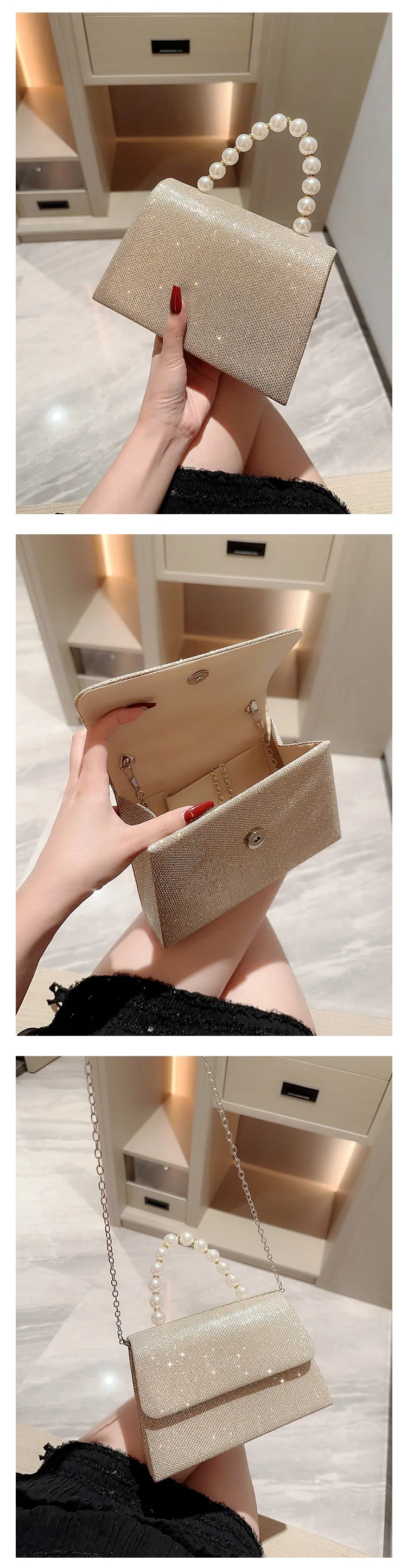 Pearl Chain Shoulder Bags Luxury Purse Gold Bright Silk Evening Bag Women Elegant Fashion Banquet Clutch Female Handbag bolsa
