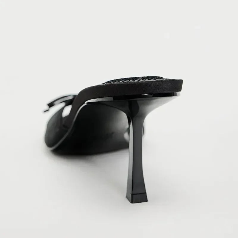 Slippers for women wearing exquisite summer haute couture with fine straps, French style black cat heel clip toe beach sandals