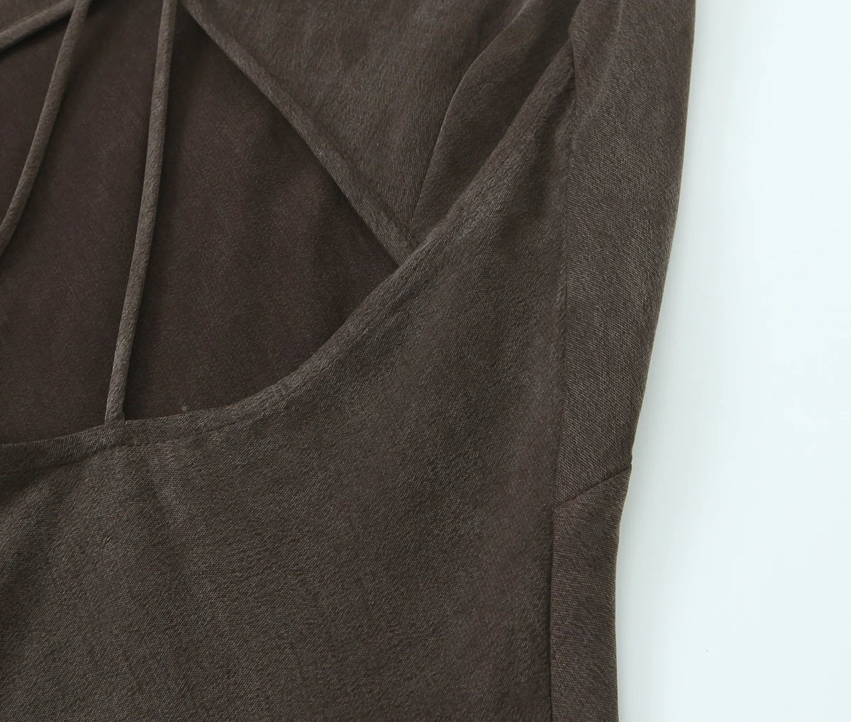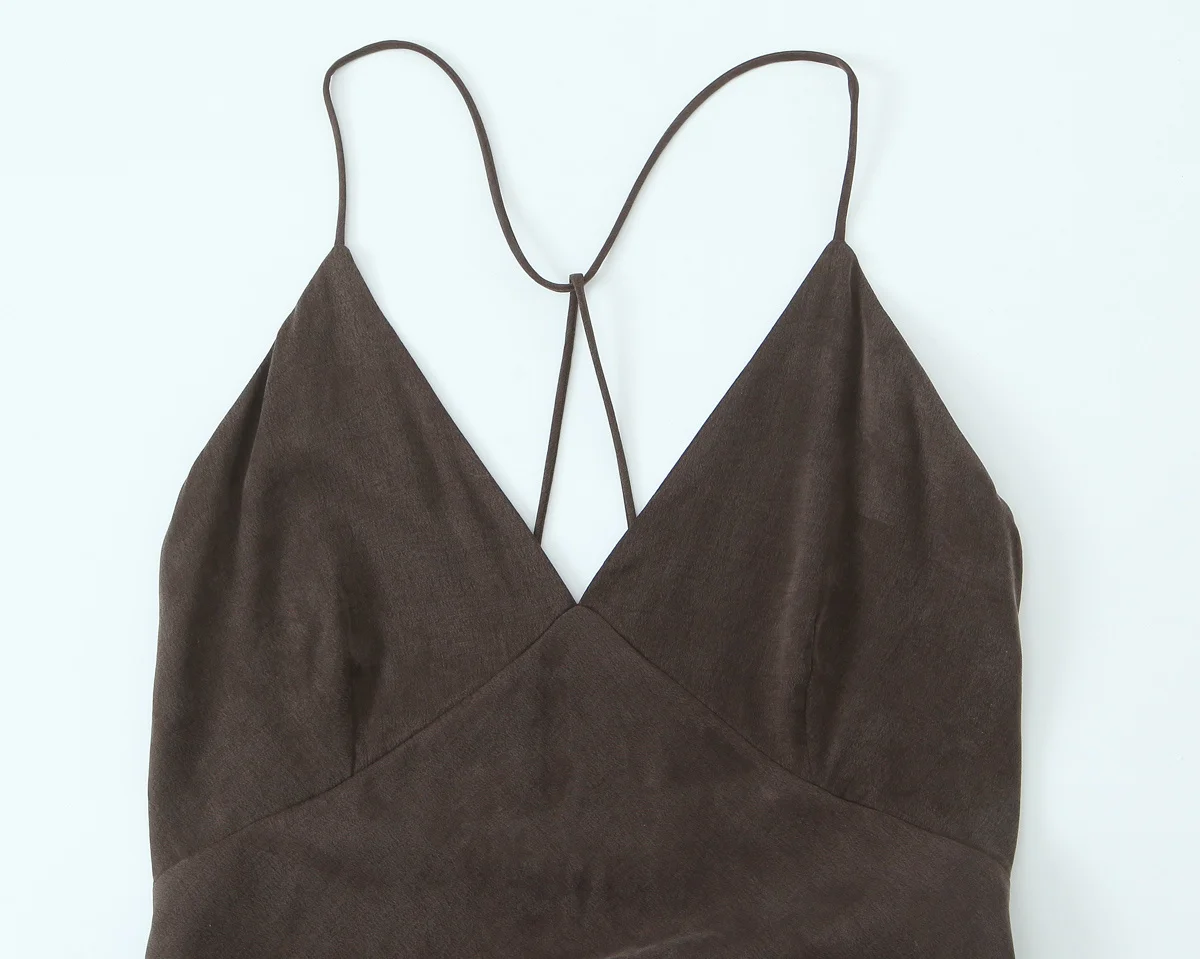 TFMLN Summer New Ladies Elegant Midi Sling Dress Sleeveless Solid Backless Slim V-Neck Dresses 2025 Beach Party Sexy Dress