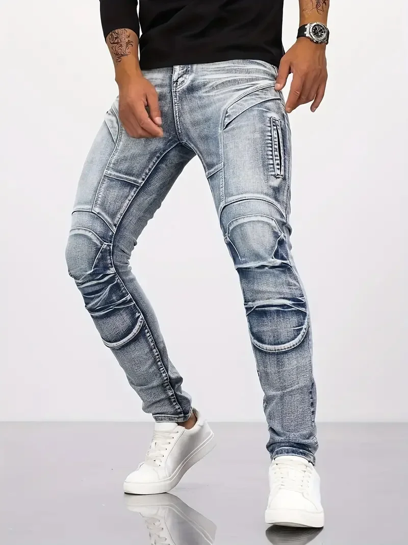 Two tone distressed patchwork jeans for men trendy jeans for summer thin straight leg pants slim fit small leg distressed jeans