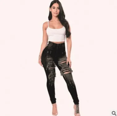 Washed Ripped High-waisted Slim-fit Small-leg Jeans, Four Seasons New Fashionable Casual Skinny Jeans for Women, Pencil Pants