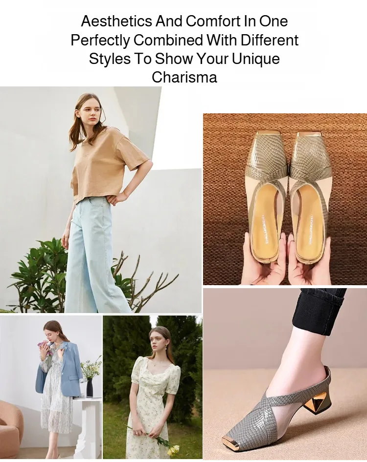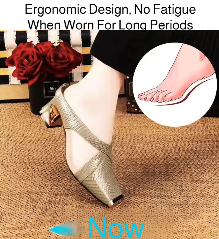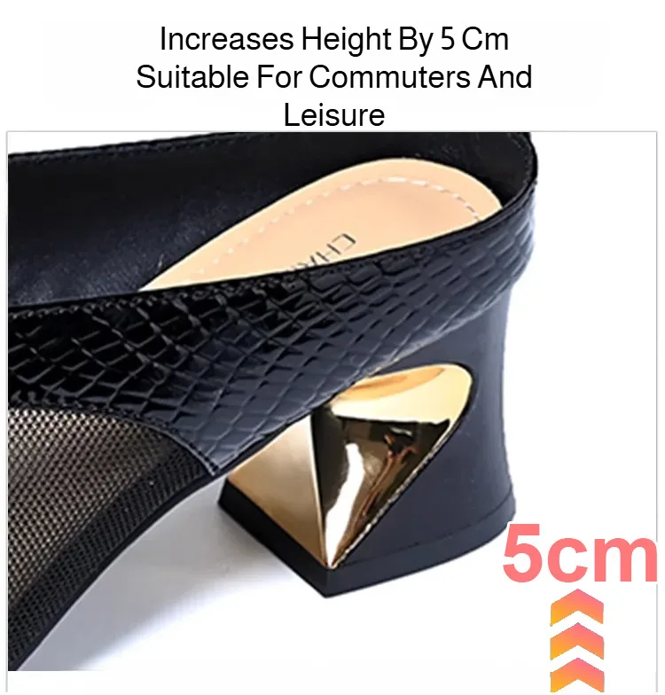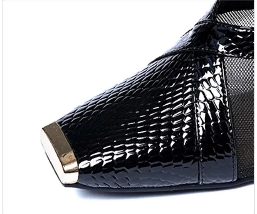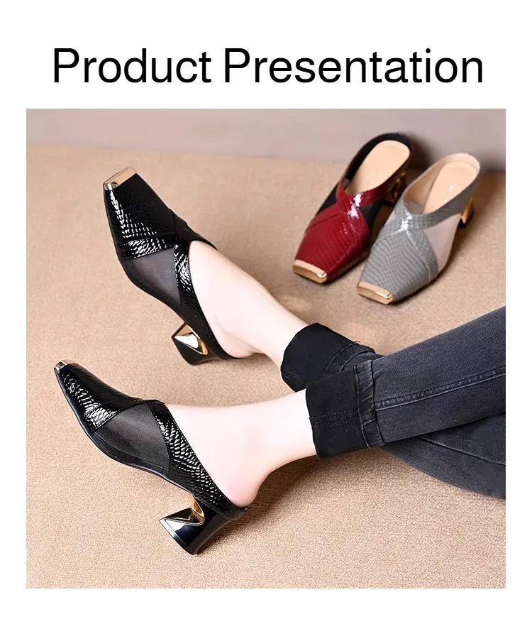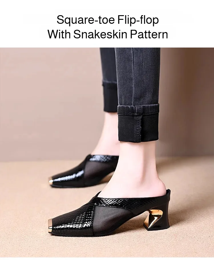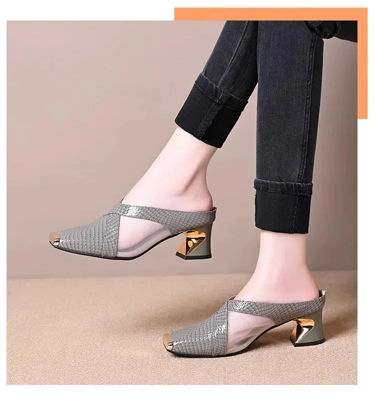 Women's outdoor sandals snakeskin thick heel mesh half slippers square toe sandals