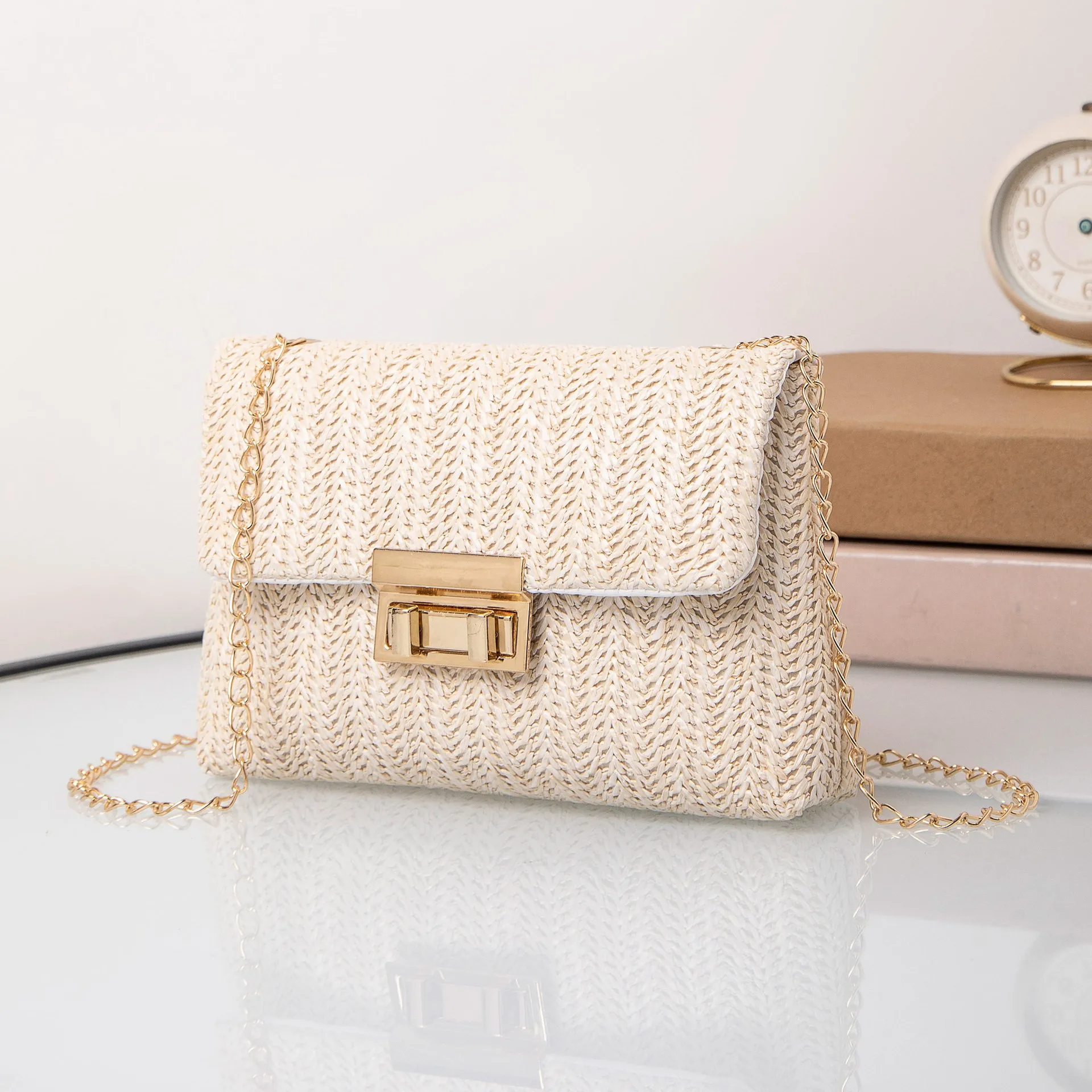 Woven Straw Handwoven Women's Shoulder Bag, Fashion Solid Color Crossbody Purse with Lock Closure Purses and Handbags Сумка 2025